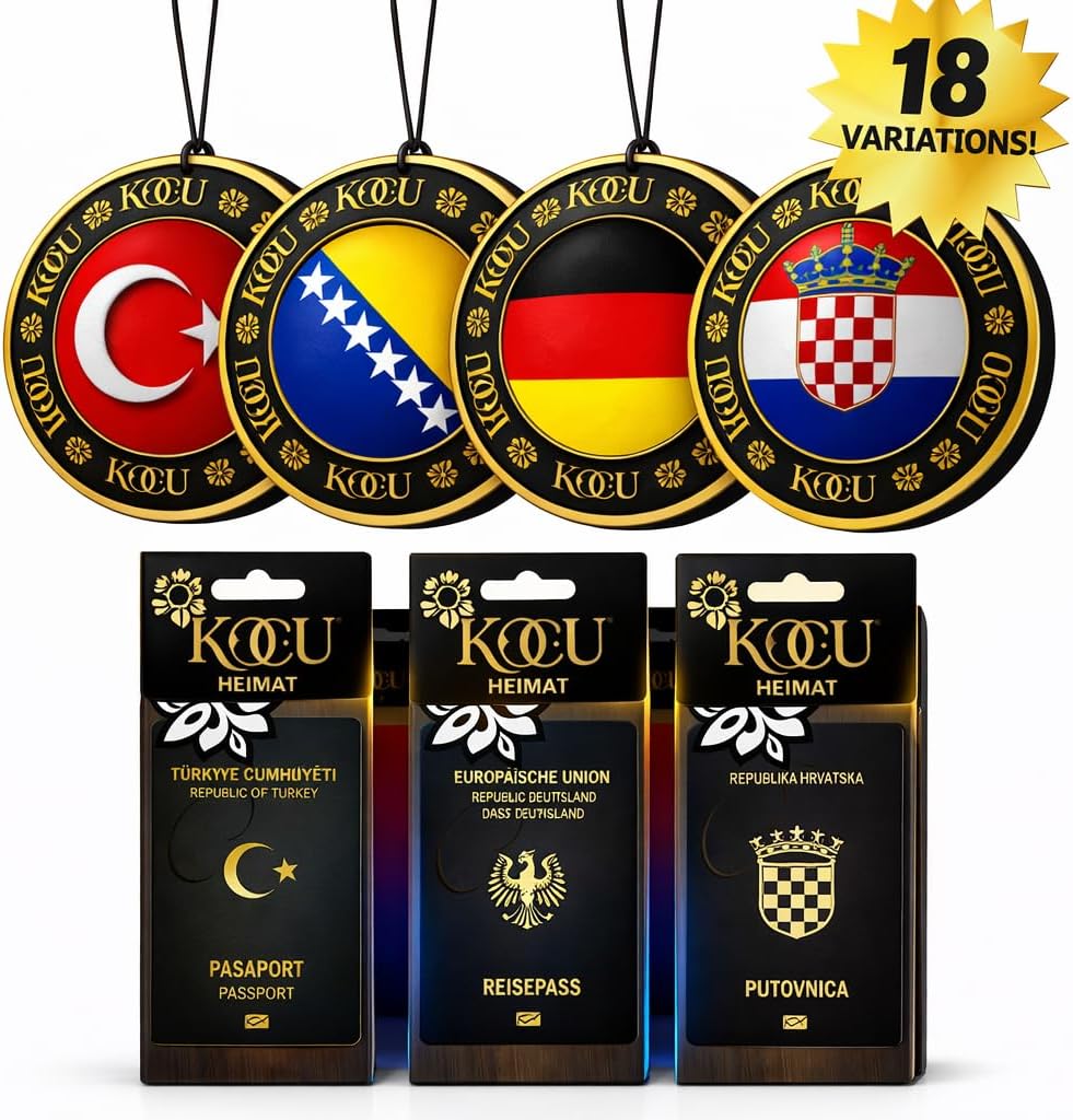Ароматизаторът за въздух за кола KOCU в ексклузивен паспортен дизайн съчетава стилен дизайн с приятен аромат за вашия автомобил. Вдъхновен от истински паспорти, всяка версия представлява специфична държава и придава на интериора на вашия автомобил уникален, висококачествен вид. Ароматизаторът просто се окачва на огледалото за обратно виждане и осигурява дълготрайно, равномерно освобождаване на аромата. Идеален за всеки, който иска да направи колата си не само свежа, но и уникална. Кънтри изданието е перфектен подарък, колекционерски артикул или лично изявление - независимо дали за вашата собствена кола или за приятели и семейство. Висококачествената изработка, модерният дизайн и приятният аромат правят освежителя за въздух KOCU специален аксесоар за всеки автомобил.