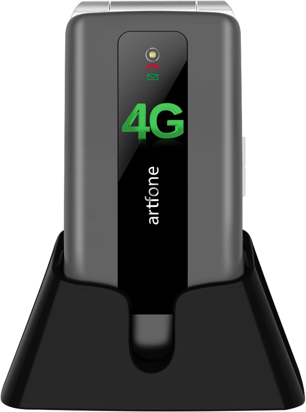 artfone 4G mobile senior mobile phone without contract, 4G volte folding mobile phone with emergency call button, pensioner mobile phone large buttons, large button mobile phone with charging station, 2.4 inch colour display folding mobile phone with 2.4 inch colour display and 4G: experience a classic folding mobile phone design that looks fashionable and elegant and fits in any pocket. The phone can be easily unlocked by opening the lid, which makes it particularly user-friendly for the elderly. The HD colour display has a large font and clear menu icons, which makes operation much easier for the elderly. Large 1000mAh battery and network support: Stay connected to any mobile network provider that supports 2G, 3G or 4G networks. The mobile phone is equipped with an improved rechargeable lithium battery that supports a talk time of up to 4-5 hours and a standby time of up to 200 hours. The charging station and cable charge faster and safer. EMERGENCY SOS BUTTON & FLASHLIGHT Be prepared for any emergency situation with a large button on the back, which can dial up to 5 SOS numbers and send text messages for immediate help from family or friends. The torch button on the right side helps you see better in the dark, and the A/B/C button can quickly dial the frequently used numbers. Specially designed for seniors Enjoy a mobile phone with large buttons that are easy to read and press. It offers an amazingly high volume and clear sound that are hearing aid friendly for the elderly. The voice function when pressing the numbers avoids errors, and the voice and menu language support English, German, Italian, French and Spanish, which makes it perfect for seniors, parents or children. ADDITIONAL FEATURES FOR MORE CONVENIENCE: enjoy a variety of features that make your