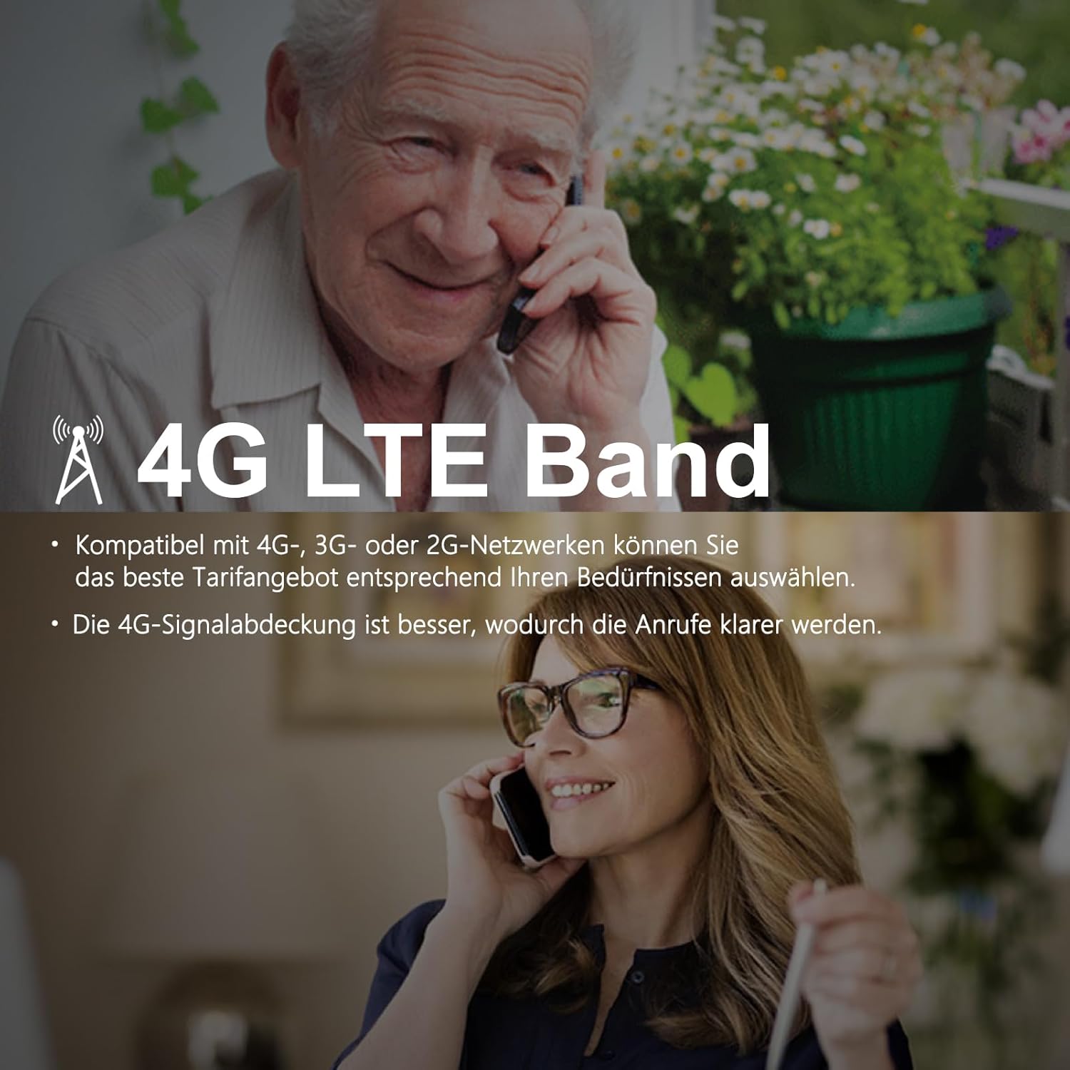 • 4G мобилен телефон без договор: благодарение на модерната 4G VoLTE технология, можете да се наслаждавате на ясен гласов звук - дори на оживени места. Мобилният телефон работи с всички популярни GSM мрежи по света, включително Vodafone. Така че сте гъвкави и независими, Orange и др.