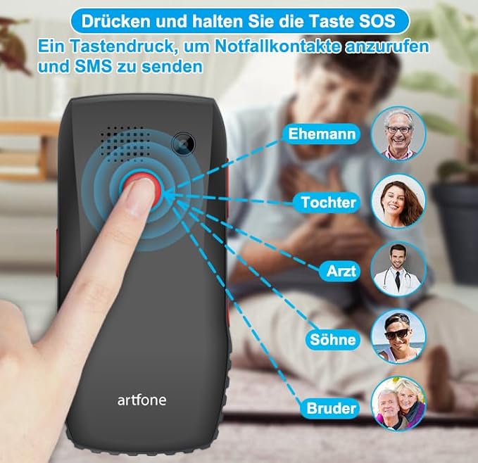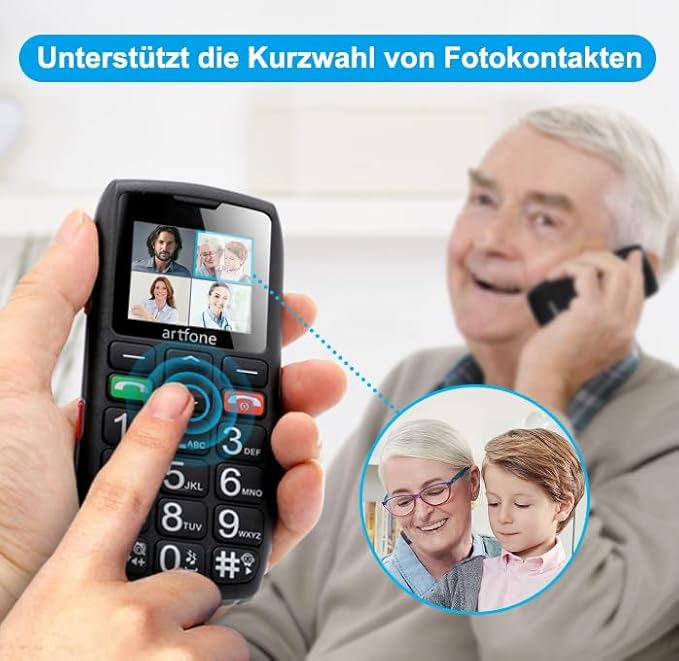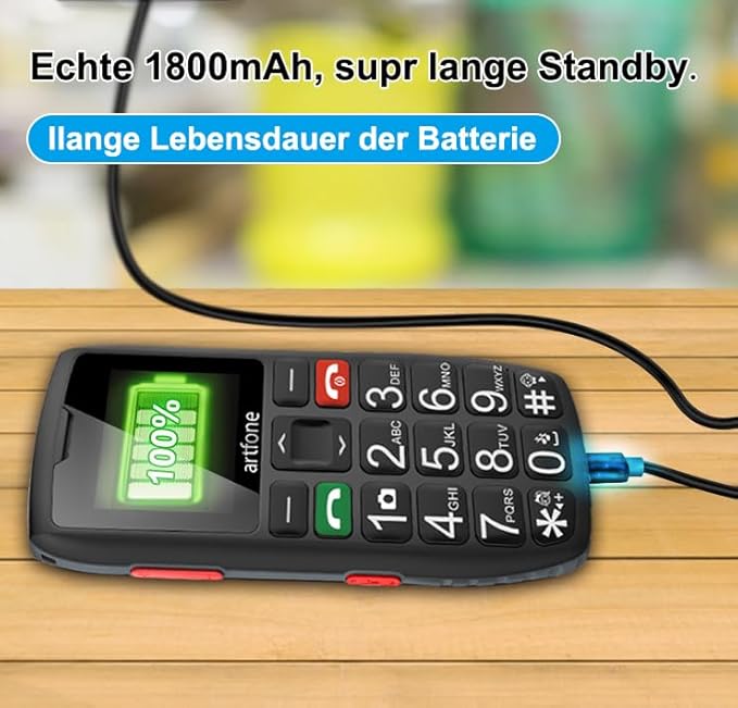 • Лесен за употреба от възрастни хора: Artfone C1 е специално проектиран за по-възрастни потребители, с осветена клавиатура и цветен дисплей, който показва едър текст. Цифровото подканване при набиране помага да се избегнат грешки, а страничните бутони за сила на звука и заключване на клавиатурата правят работата особено лесна за ползване.
