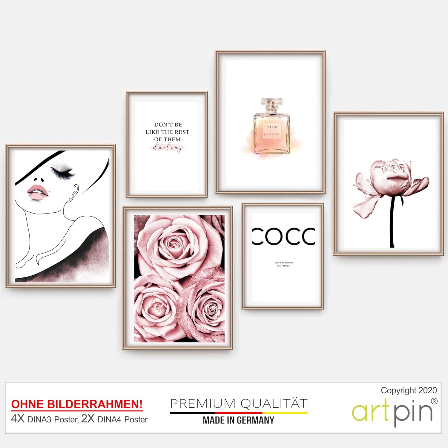 artpin® Комплект модерни постери - Картини Декорация за хол Спалня - Стена с картини без рамка - Дизайнерски модни стенни картини Coco Rose 4 x A3 | 2 x A4 - W4