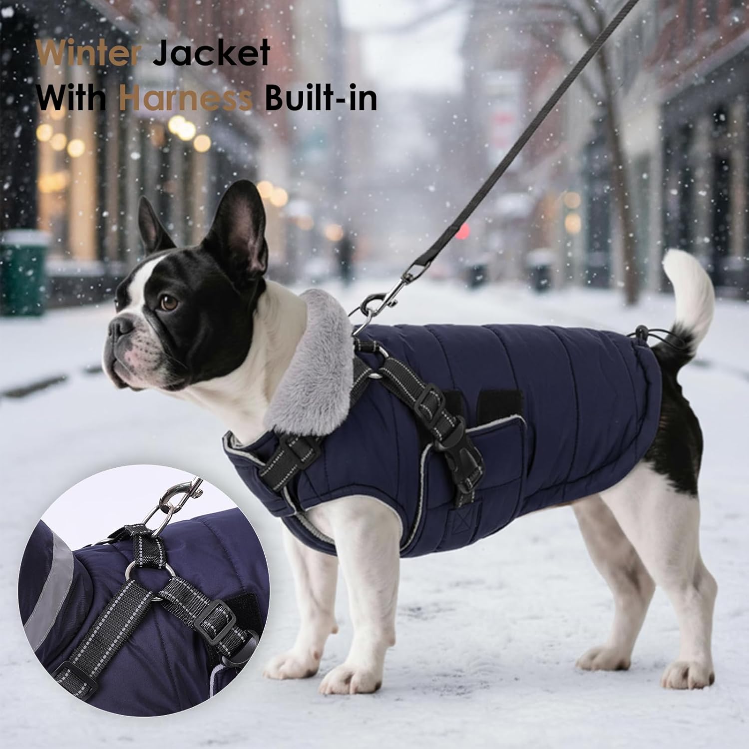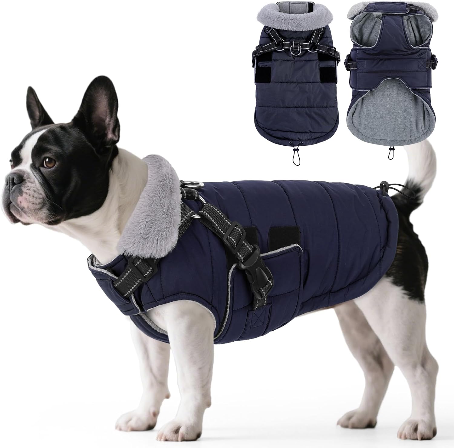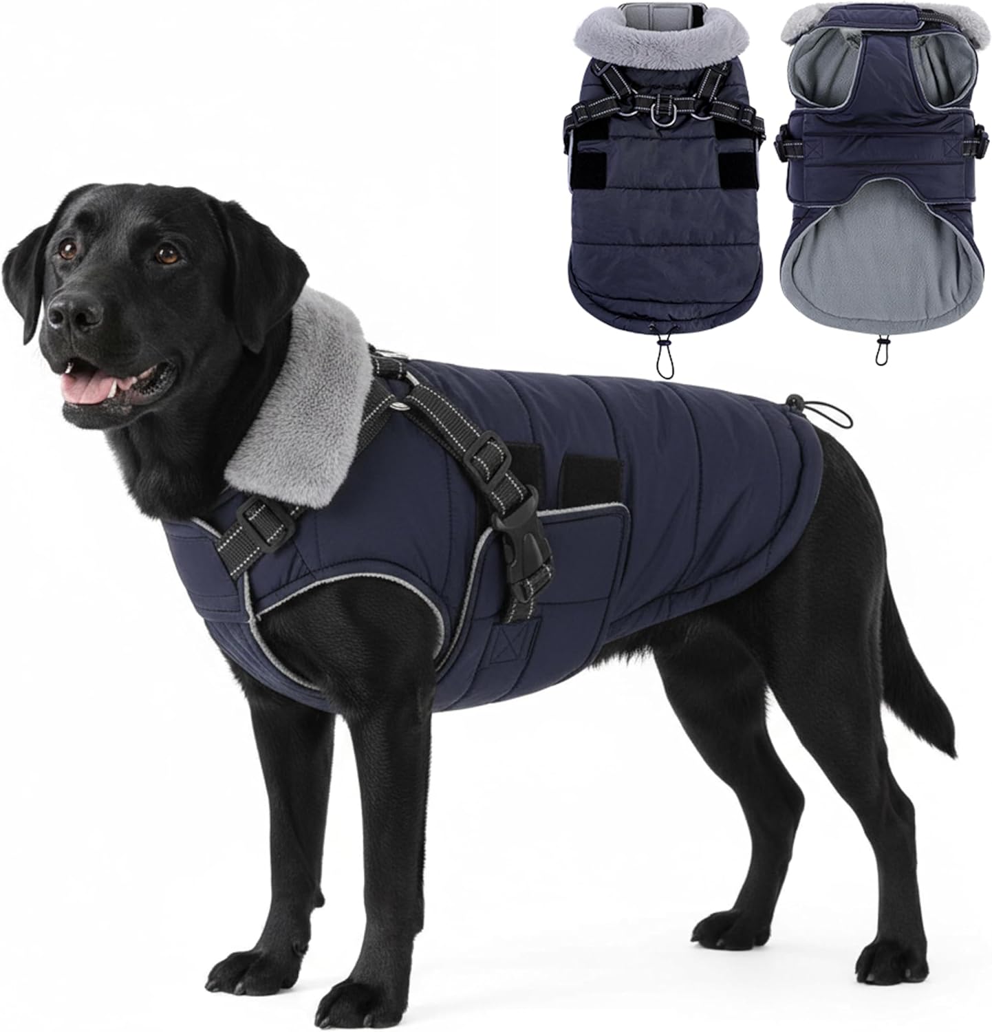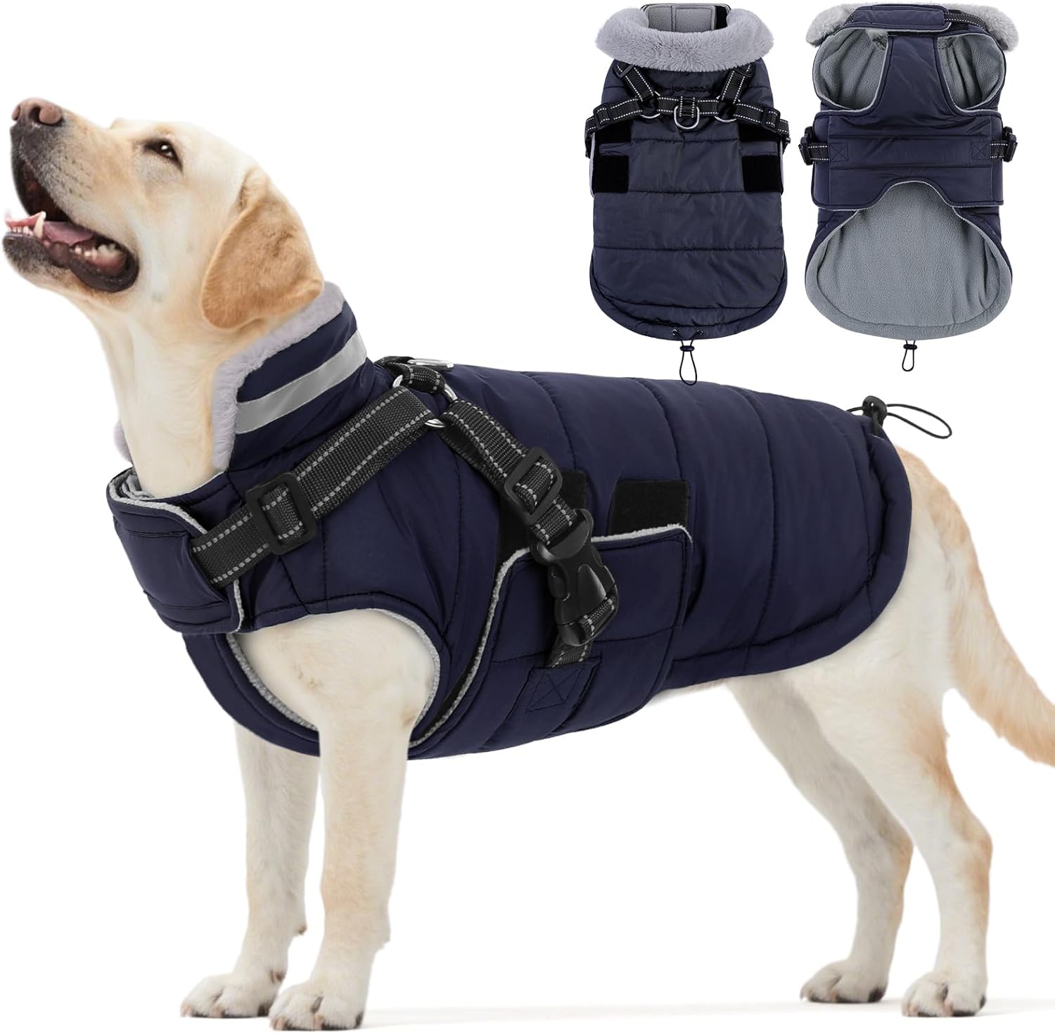 ASENKU Зимно кучешко палто за малки, средни и големи кучета, Палто за кучета с нагръдник, Водоустойчиво, Ветроустойчиво, Светлоотразително, Топло кучешко яке с нагръдник, Зимни якета и зимни палта за кучета M