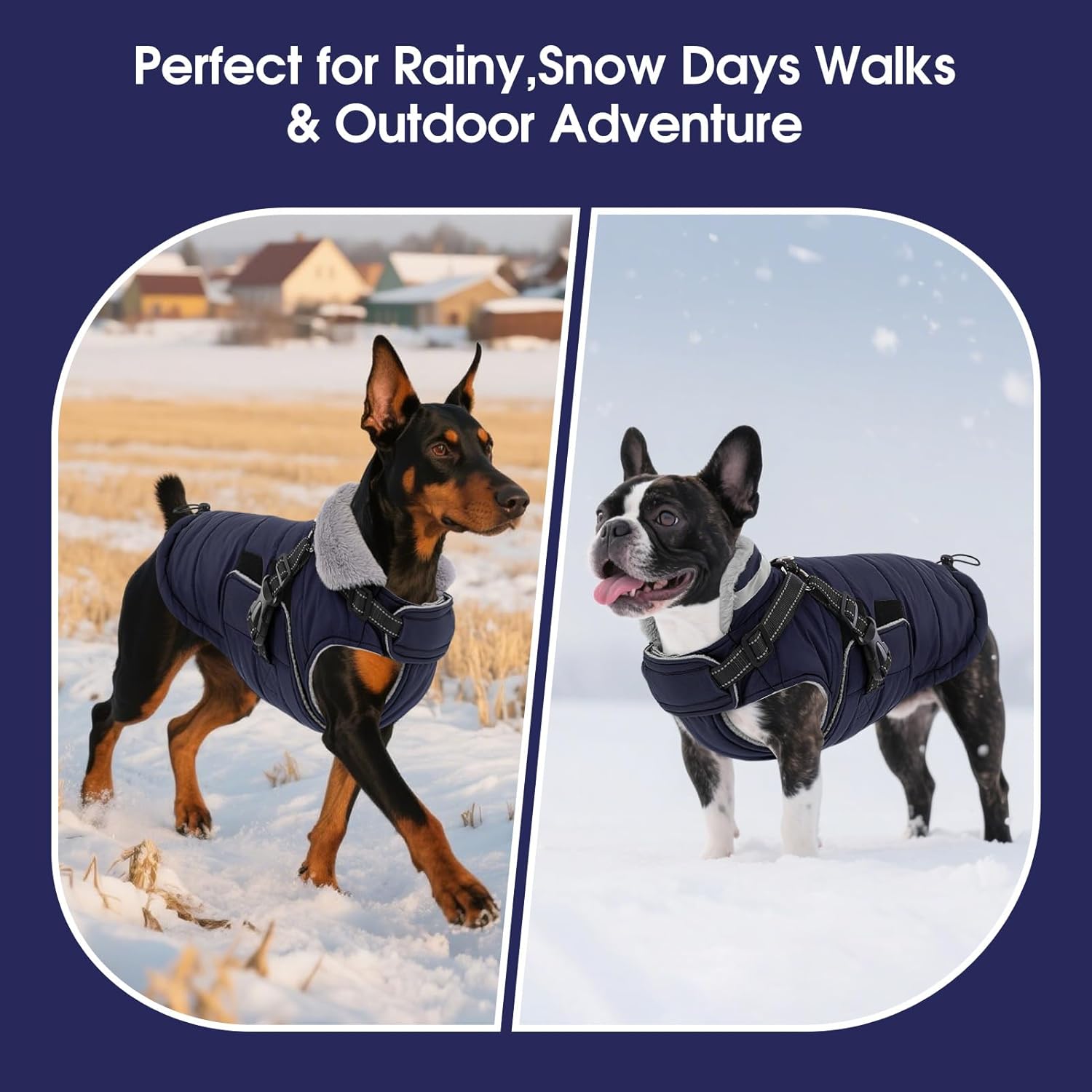 • Палто за кучета с нагръдник: якето за кучета е снабдено с регулируеми презрамки, стабилно и не се къса лесно, D-образният пръстен е дебел и издръжлив и има по-висока якост на опън. Това яке за кучета е идеално за есен, зима, дъждовен сезон и ветровити дни. Това зимно яке за кучета е перфектно за ежедневна употреба от малки, средни и големи кучета, разходки, приключения на открито, къмпинг, туризъм, пътуване и много други дейности на закрито и открито.