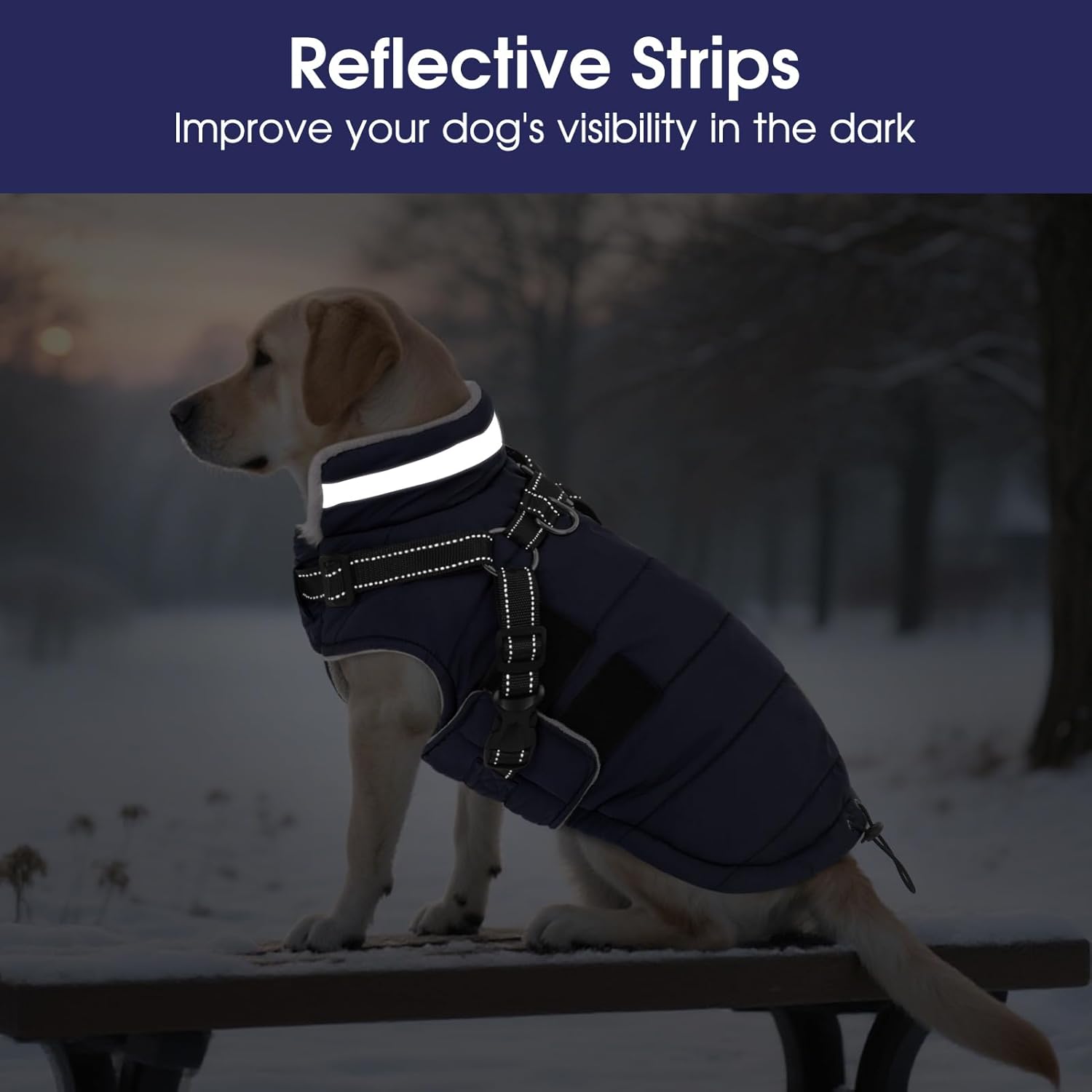 ASENKU Зимно кучешко палто за малки, средни и големи кучета, Палто за кучета с нагръдник, Водоустойчиво, Ветроустойчиво, Светлоотразително, Топло кучешко яке с нагръдник, Зимни якета и зимни палта за кучета, XL