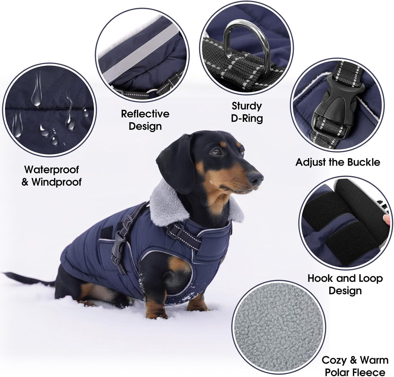 • Палто за кучета с нагръдник: якето за кучета е снабдено с регулируеми презрамки, стабилно и не се къса лесно, D-образният пръстен е дебел и издръжлив и има по-висока якост на опън. Това яке за кучета е идеално за есен, зима, дъждовен сезон и ветровити дни. Това зимно яке за кучета е перфектно за ежедневна употреба от малки, средни и големи кучета, разходки, приключения на открито, къмпинг, туризъм, пътуване и много други дейности на закрито и открито.