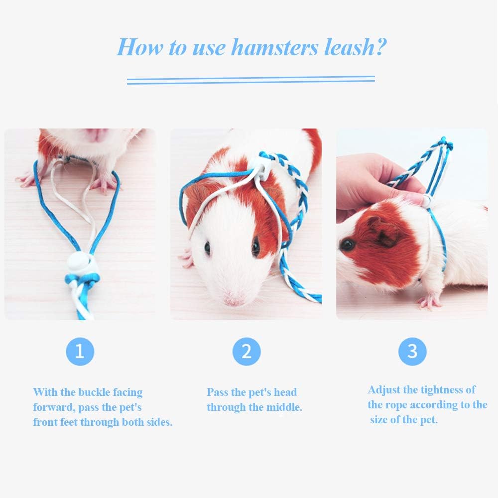 Нашата каишка за хамстер е специално проектирана за вашия малък домашен любимец. Осигурява адекватна защита за стомаха и врата на хамстера при ходене, осигурявайки комфорт и не е лесно да се подхлъзне, дори когато домашният любимец тича. Въжето е регулируемо. Можете да го регулирате според размера на вашия домашен любимец. Не правете въжето твърде хлабаво или твърде стегнато, за да предотвратите бягството или дискомфорта на домашния любимец.