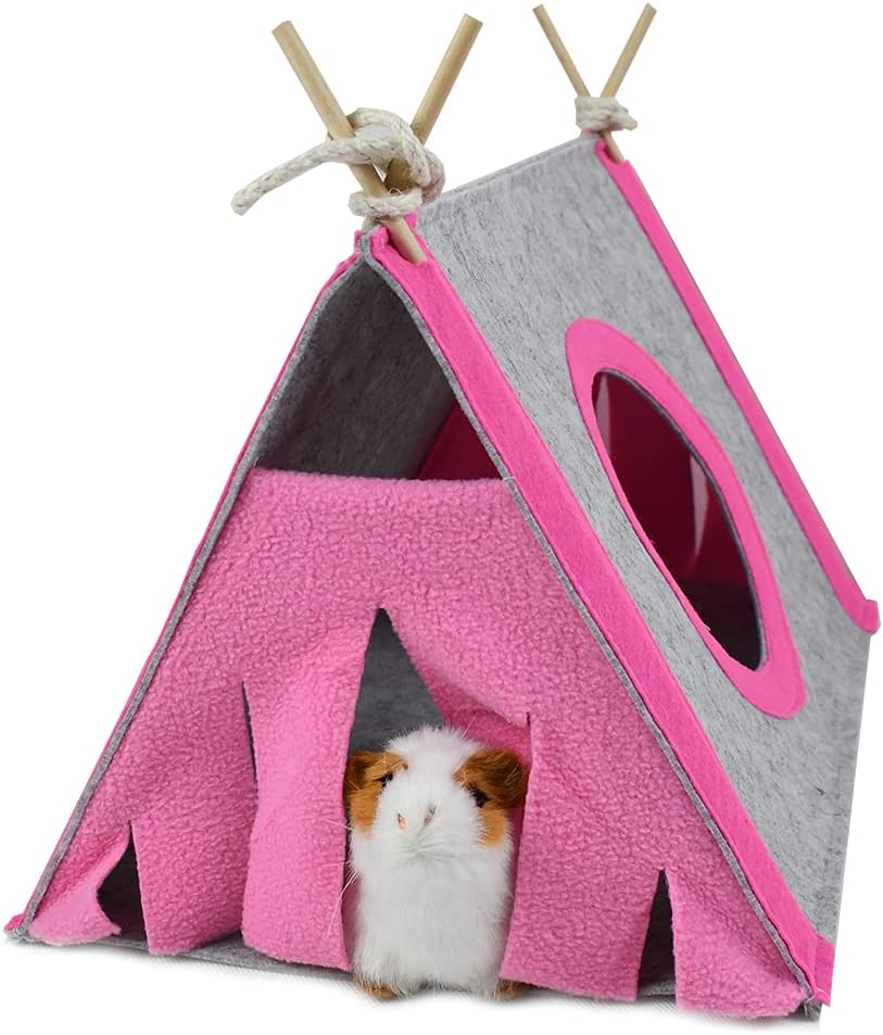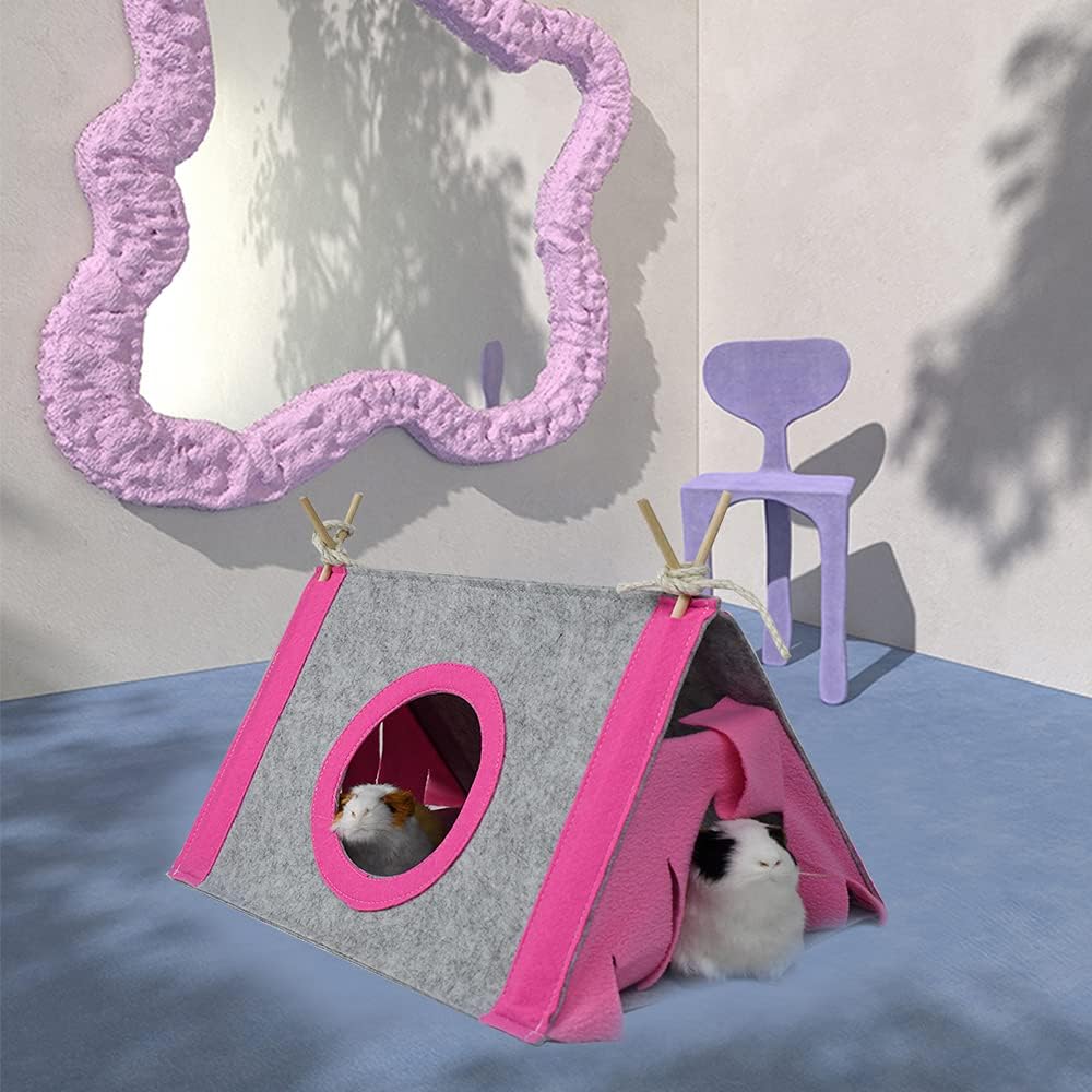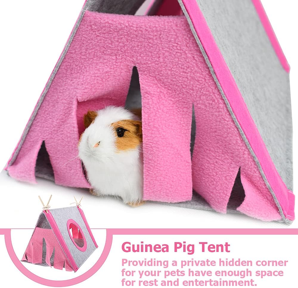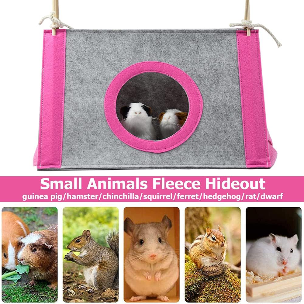 ASOCEA Скривалище за морски свинчета, ъглов хамак от полар, клетка за малки животни, скривалище за домашни любимци, къща, местообитание, палатка, гнездо, играчка за порове, чинчили, таралежи, хамстери, плъхове (розов)