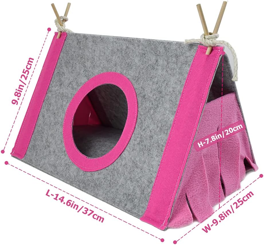• Лесен монтаж и почистване Нашата палатка за хамстери има много здрав триъгълен дизайн. Вашият домашен любимец може да влиза и излиза от двете страни. Ъгловото скривалище осигурява на вашия домашен любимец безопасно място за почивка и забавление.