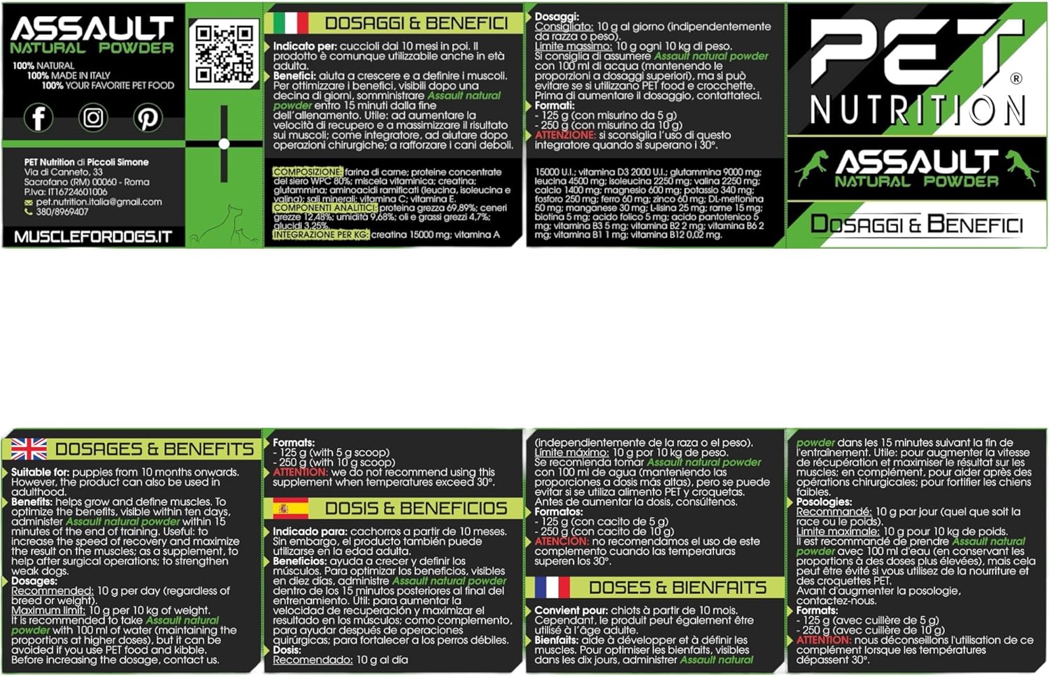 Assault Natural Powder 250, мускулна добавка за кучета, кучешки протеин, кучешки мускули