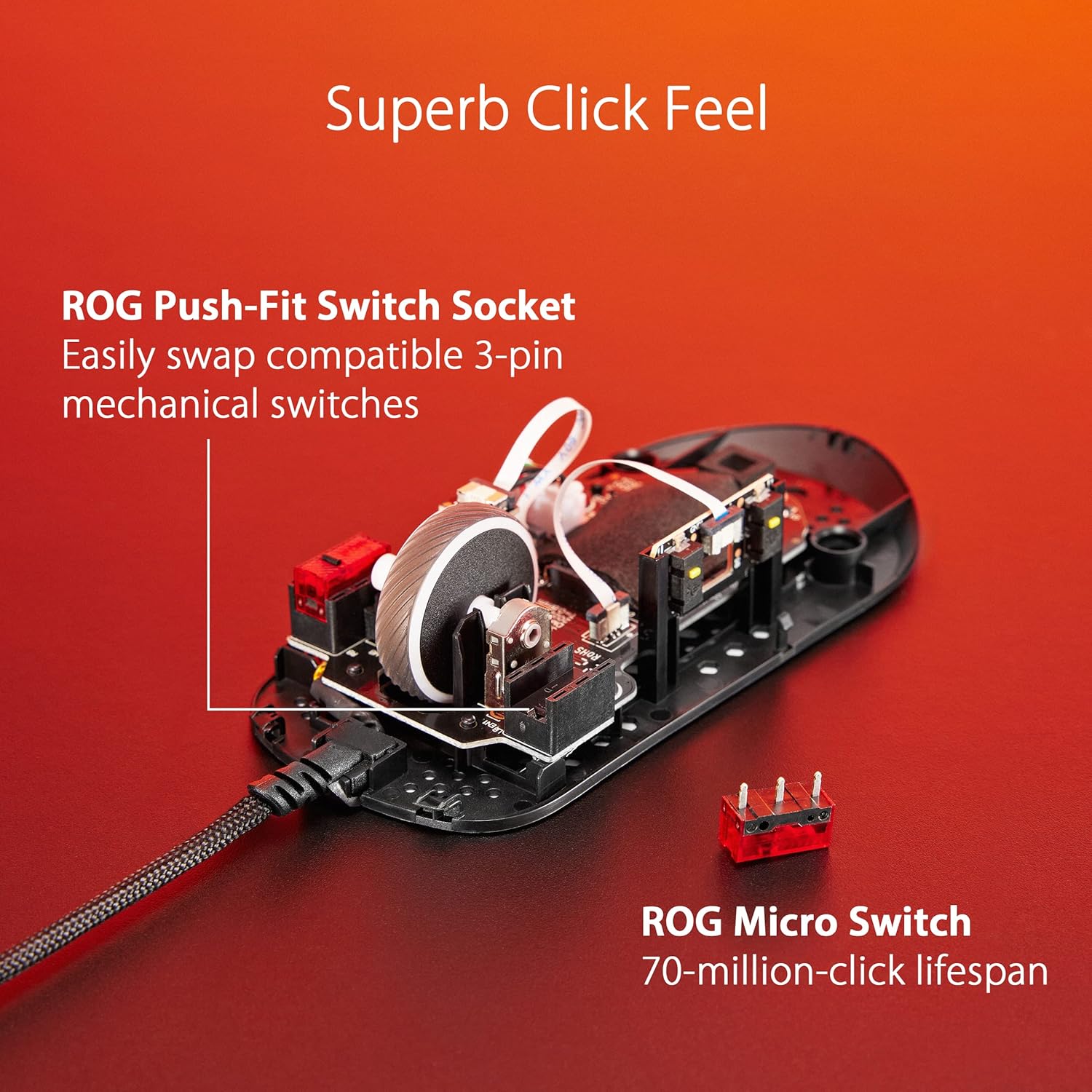 • Гъвкавият паракорд TUF Gaming минимизира разкъсванията за безжично изживяване