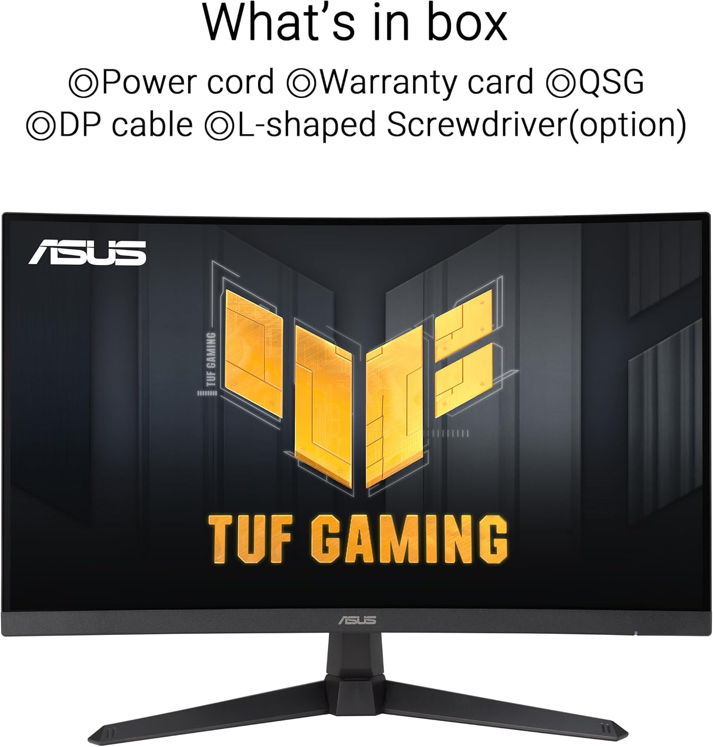 ASUS TUF Gaming VG27VQ3B 27-инчов геймърски монитор (Full HD, извит, 180Hz, ELMB SYNC, FreeSync, време за реакция 1ms, 90% DCI-P3, DisplayWidget Center)