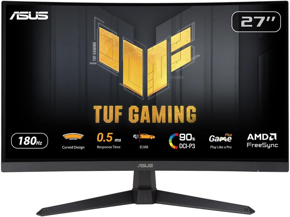 ASUS TUF Gaming VG27WQ3B - 27-инчов WQHD извит монитор - 180 Hz, 1ms GtG, FreeSync, AdaptiveSync, HDR 10 - Fast-VA панел, 16:9, 2560x1440, DisplayPort, HDMI, високоговорител