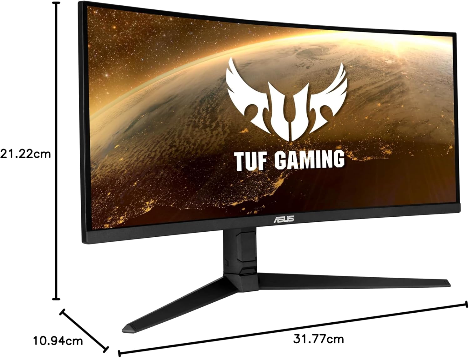 ASUS TUF Gaming VG34VQL1B, 34-инчов UWQHD извит монитор, 165 Hz, 1 ms MPRT, FreeSync Premium, DisplayHDR 400, VA панел, 21:9, 3440 x 1440, DisplayPort, HDMI, USB, ергономичен, черен
