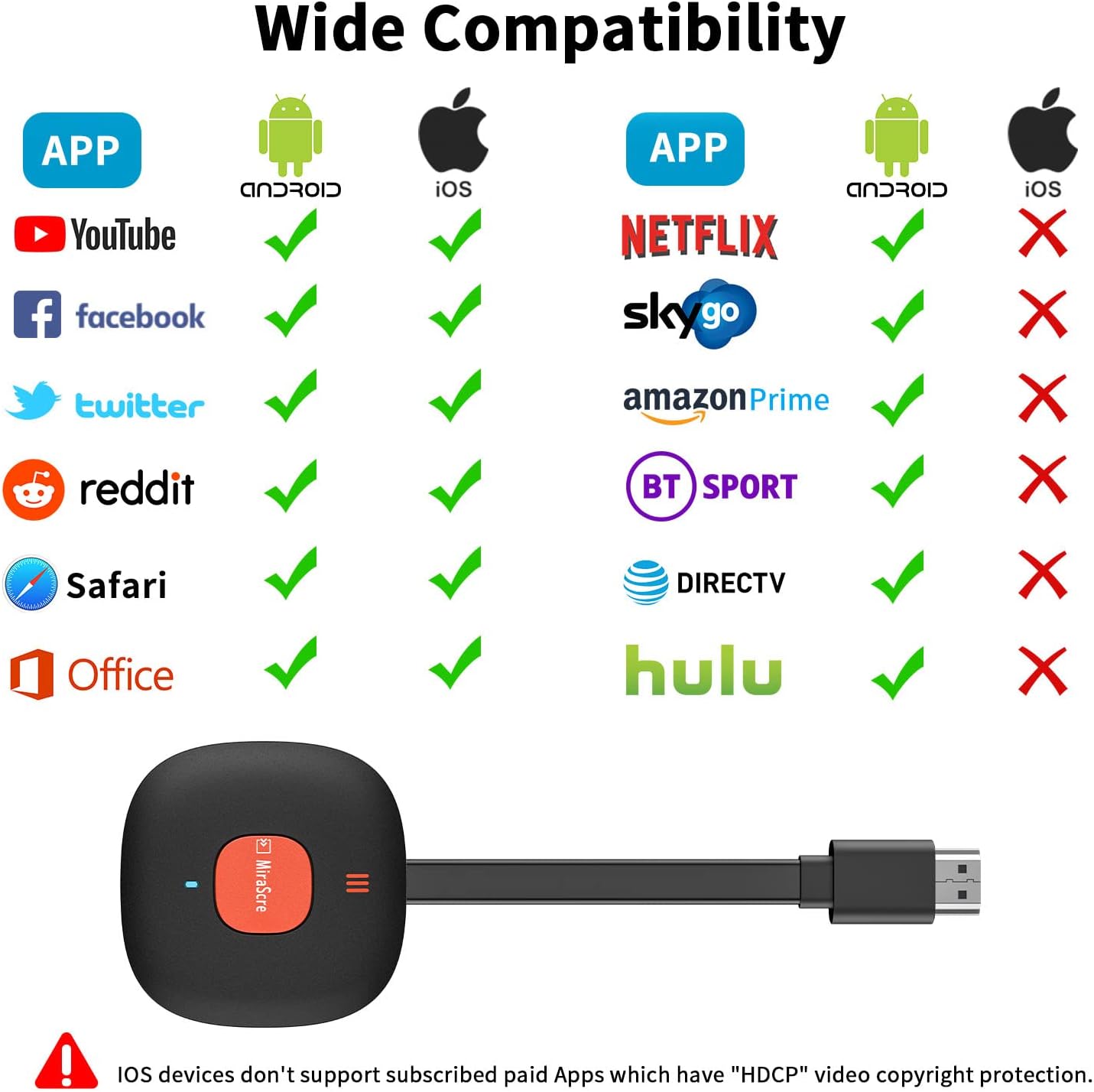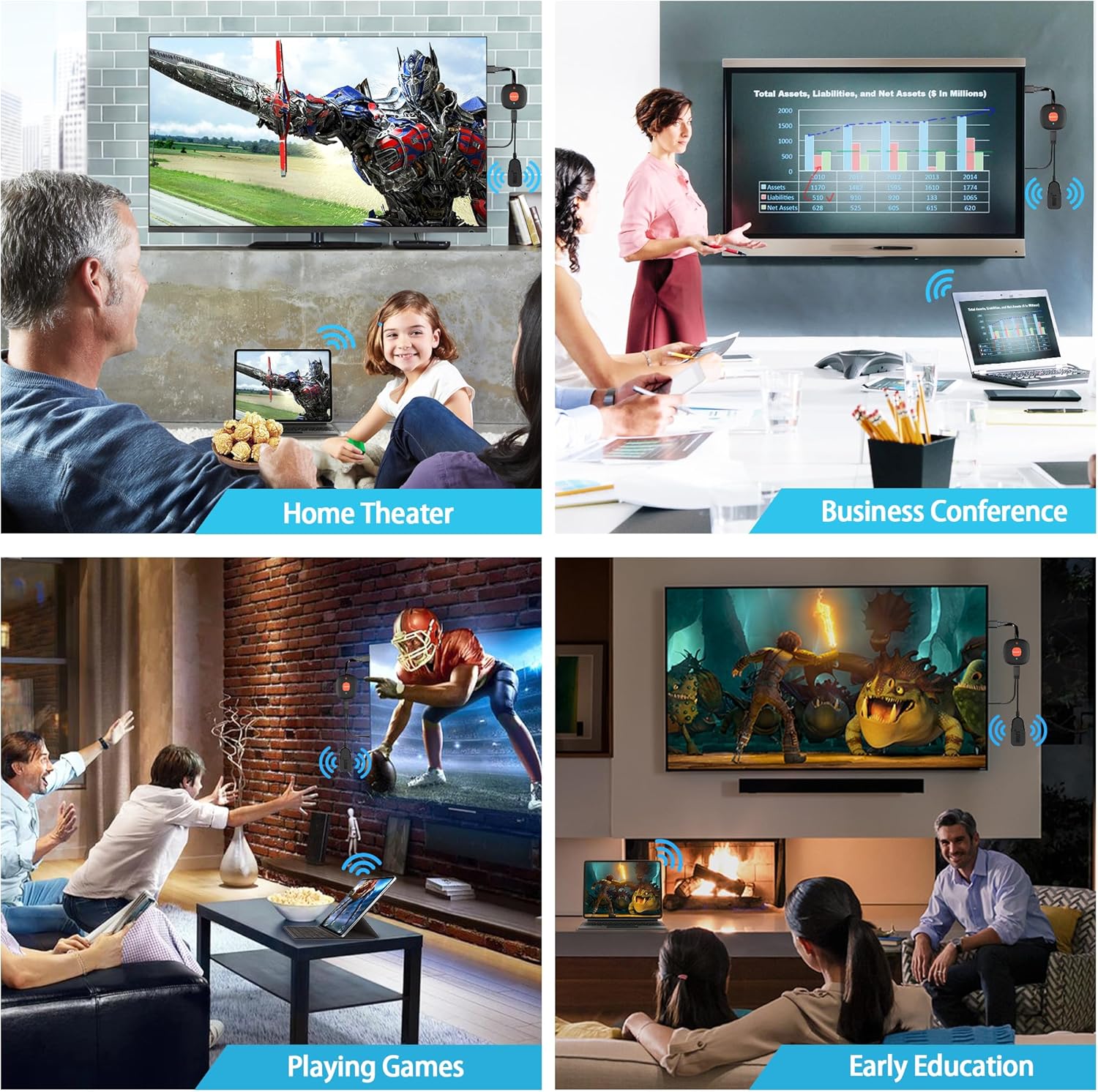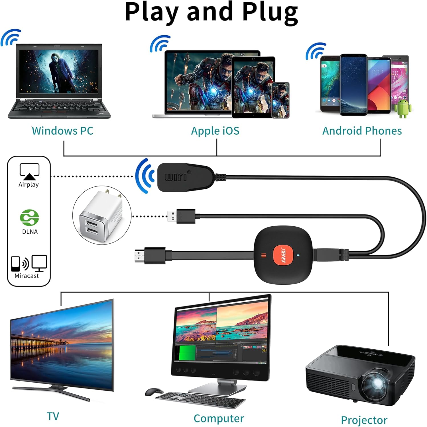 • 【Незабавно прехвърляне на цялото съдържание от Windows или Android】: Нашият безжичен адаптер за дисплей ви позволява да прехвърляте всяко съдържание, което обичате, от устройства с Windows или Android към големия екран, включително Netflix, Prime Video, HBO, YouTube, Hulu, Spotify и др. Толкова е интересно да превърнете вашия HDTV в компютърен монитор или екран за кино.