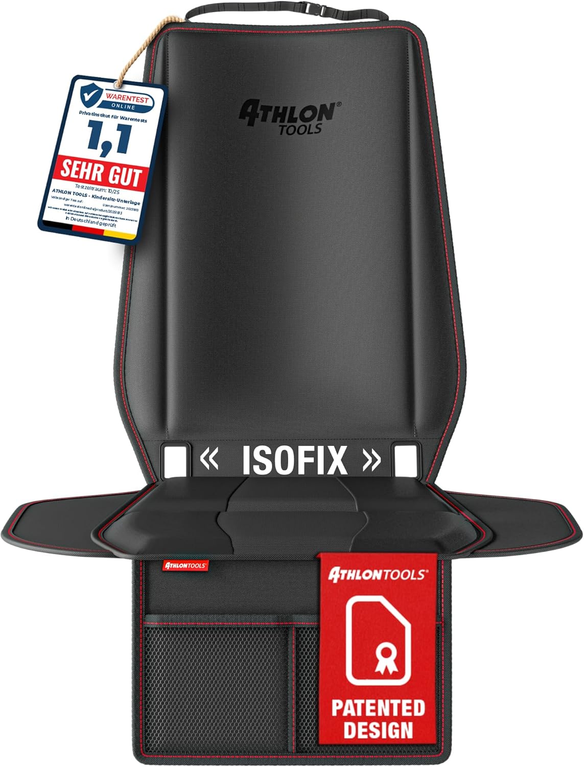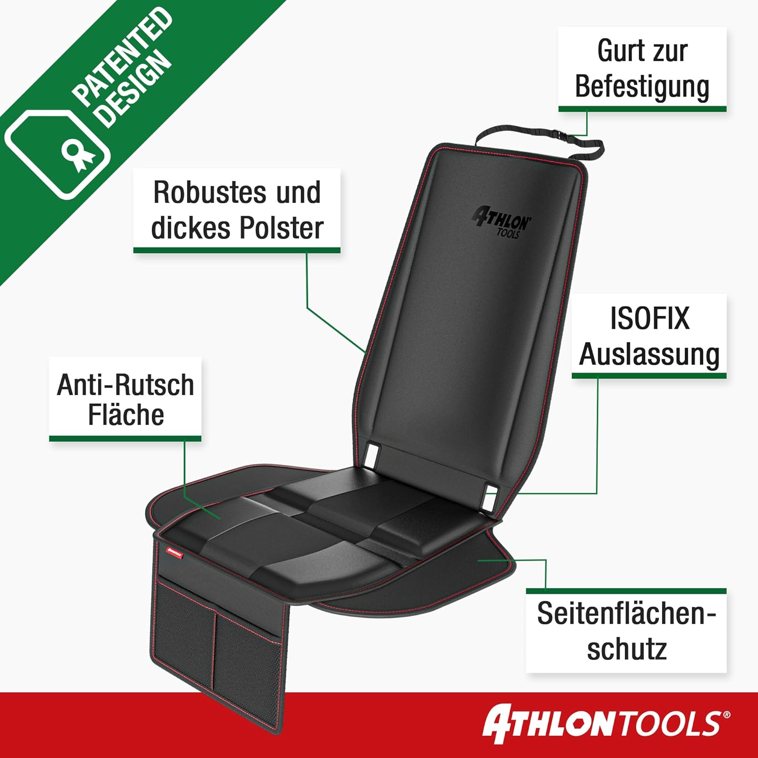 ATHLON TOOLS Подложка за детска седалка със странична защита, оптимално прилягане, съвместима с Isofix, дебело подплатена, за детски седалки, бебешки седалки и столчета за кола, патентован дизайн от Хамбург