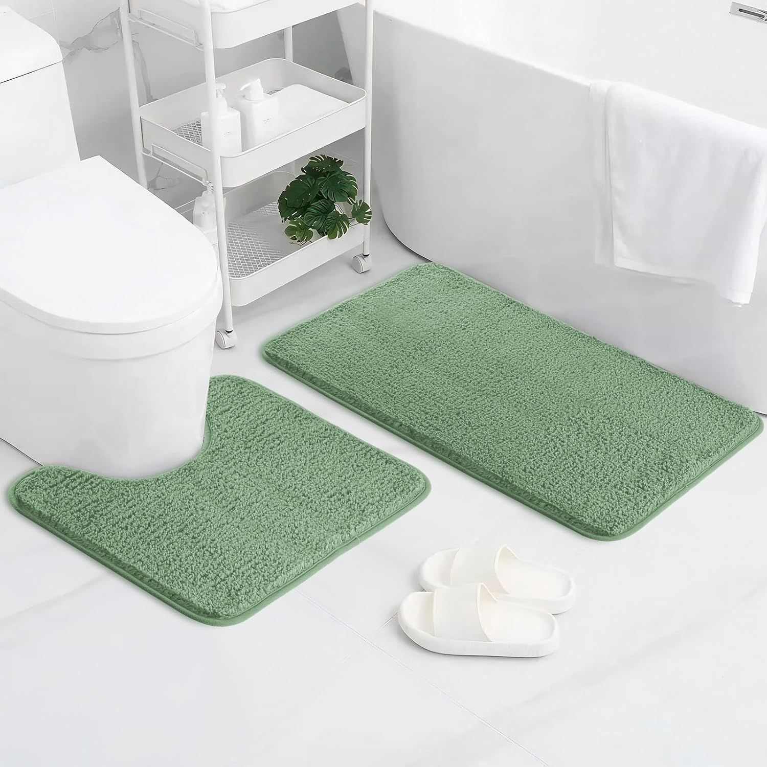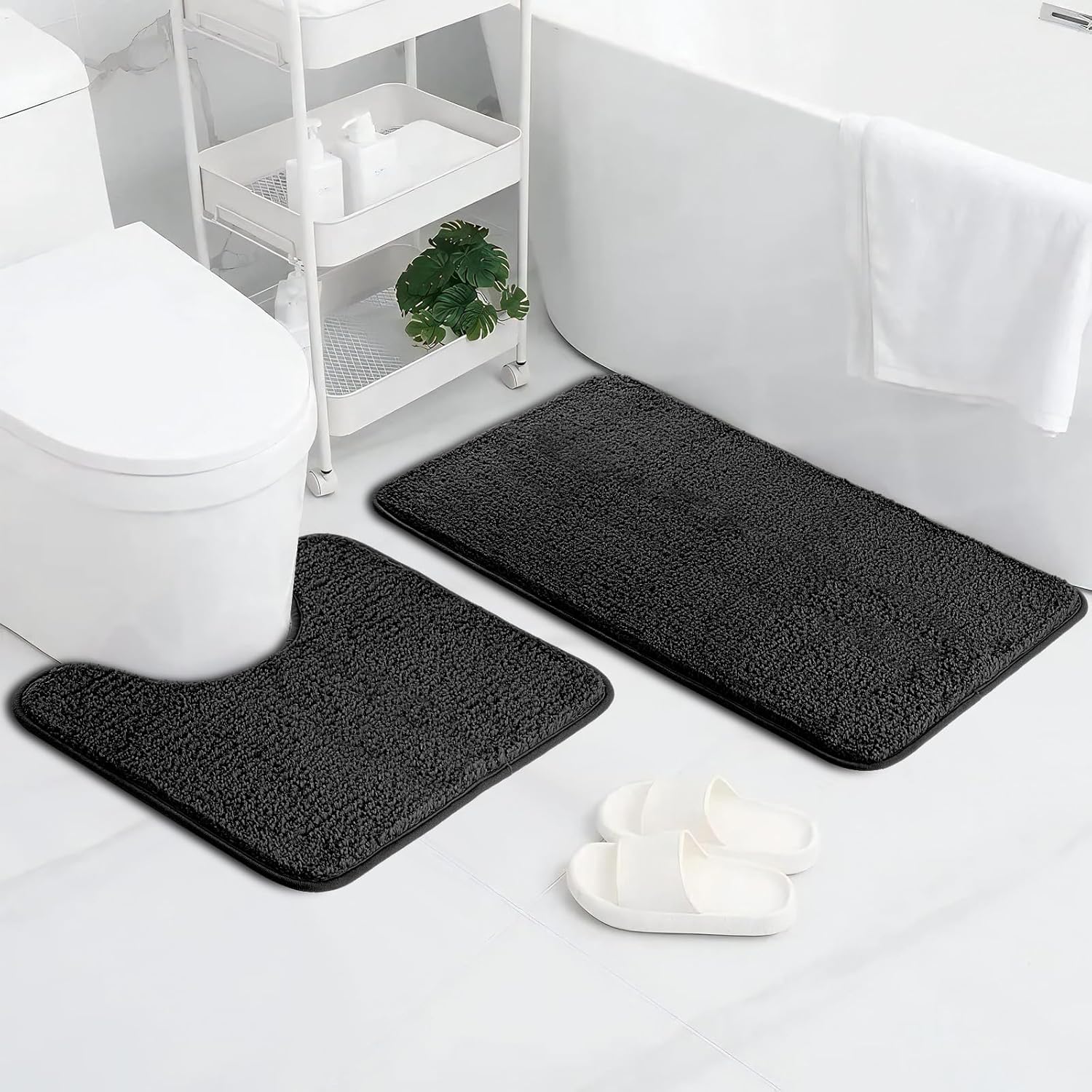 1 x правоъгълна постелка за баня + 1 x U-образна постелка за тоалетна.