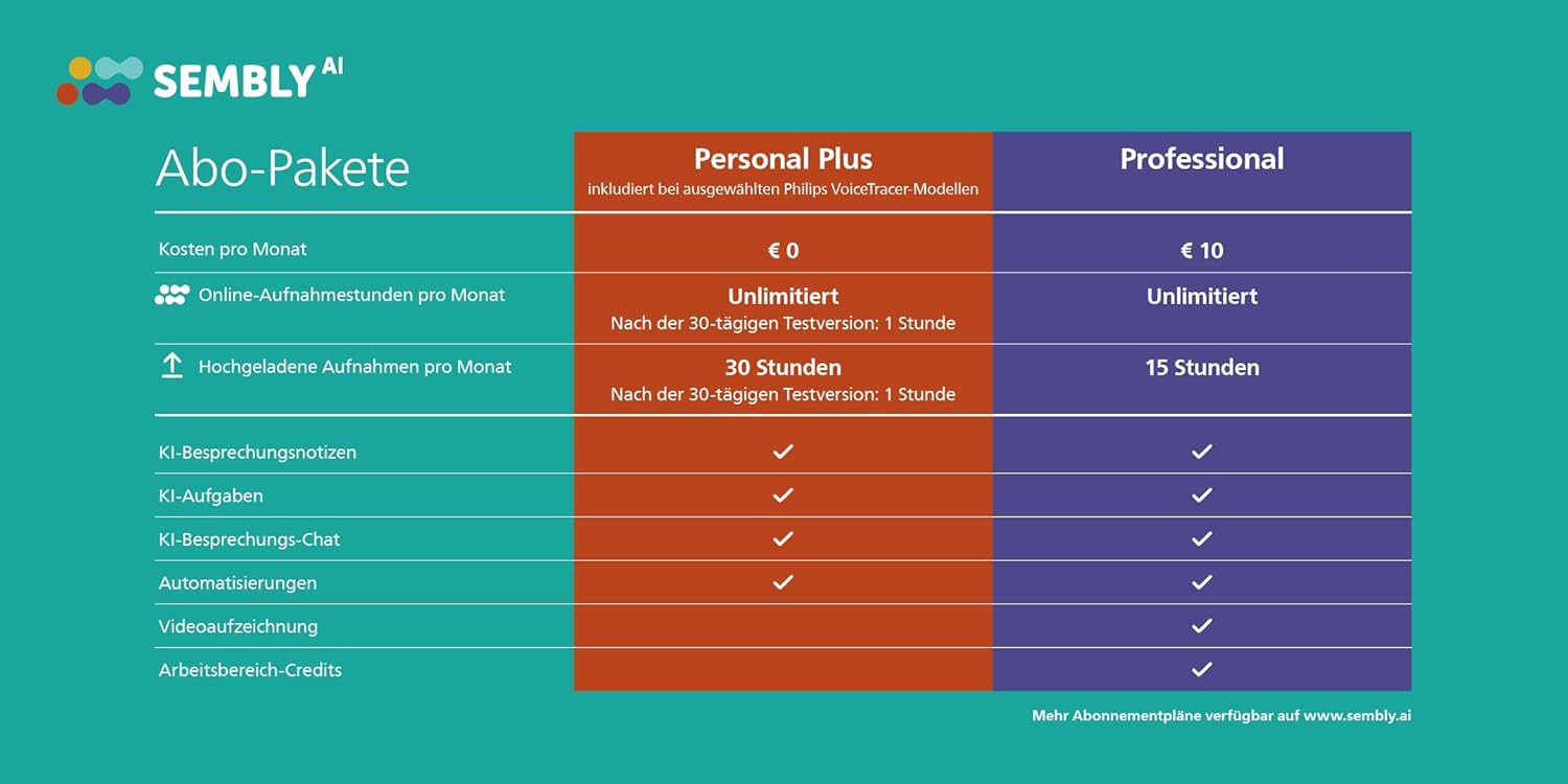 • 30-дневен пробен лиценз за Sembly с изкуствен интелект: Разпознаване на глас от множество говорители, транскрипция и генерирани от изкуствен интелект, точни резюмета на срещи. Поддържа 50 езика.