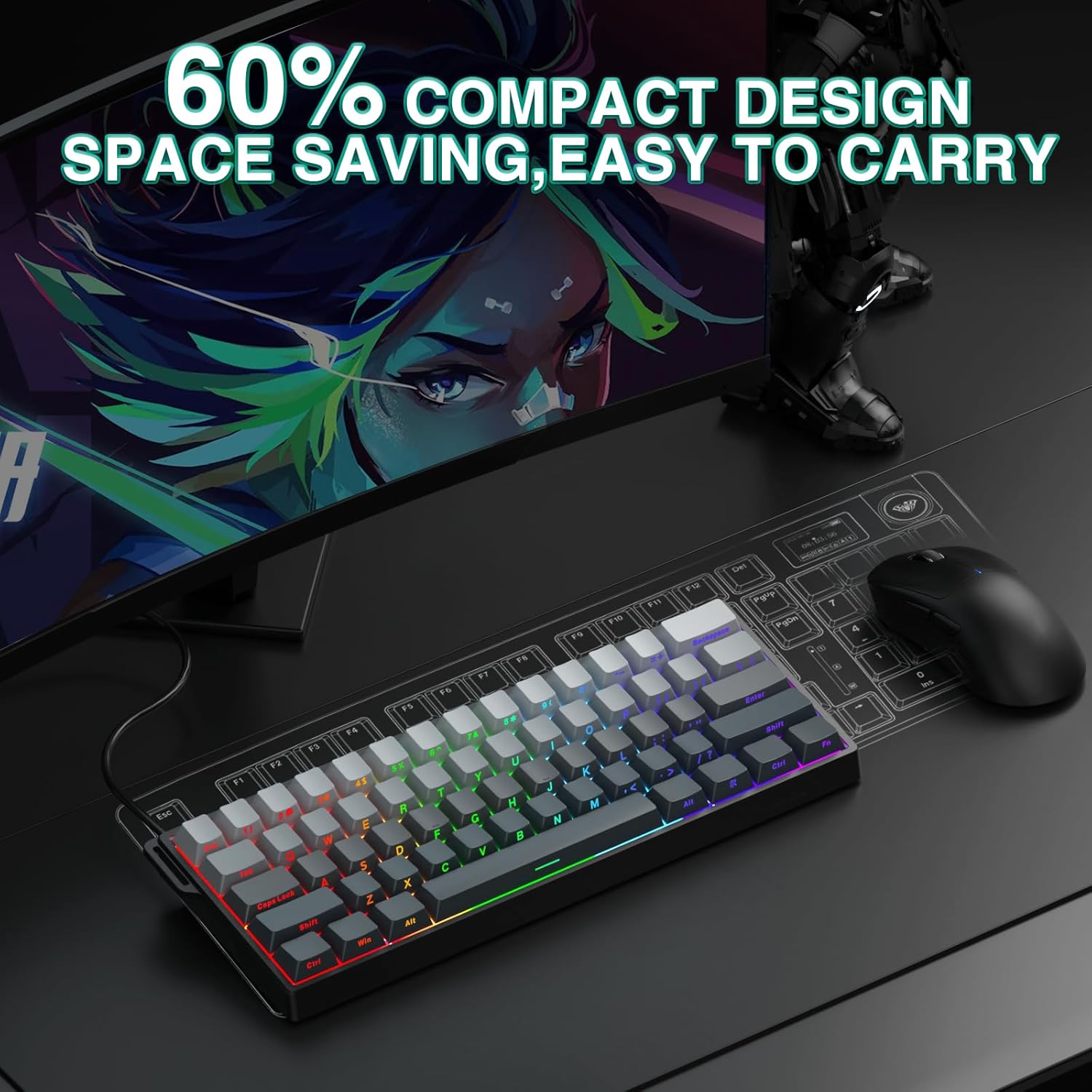 AULA Win 60 Геймърска механична клавиатура с кабел, клавиатура с ефект на Хол (градиентно сива дървена магнитна ос, WIN60-61 клавиши)