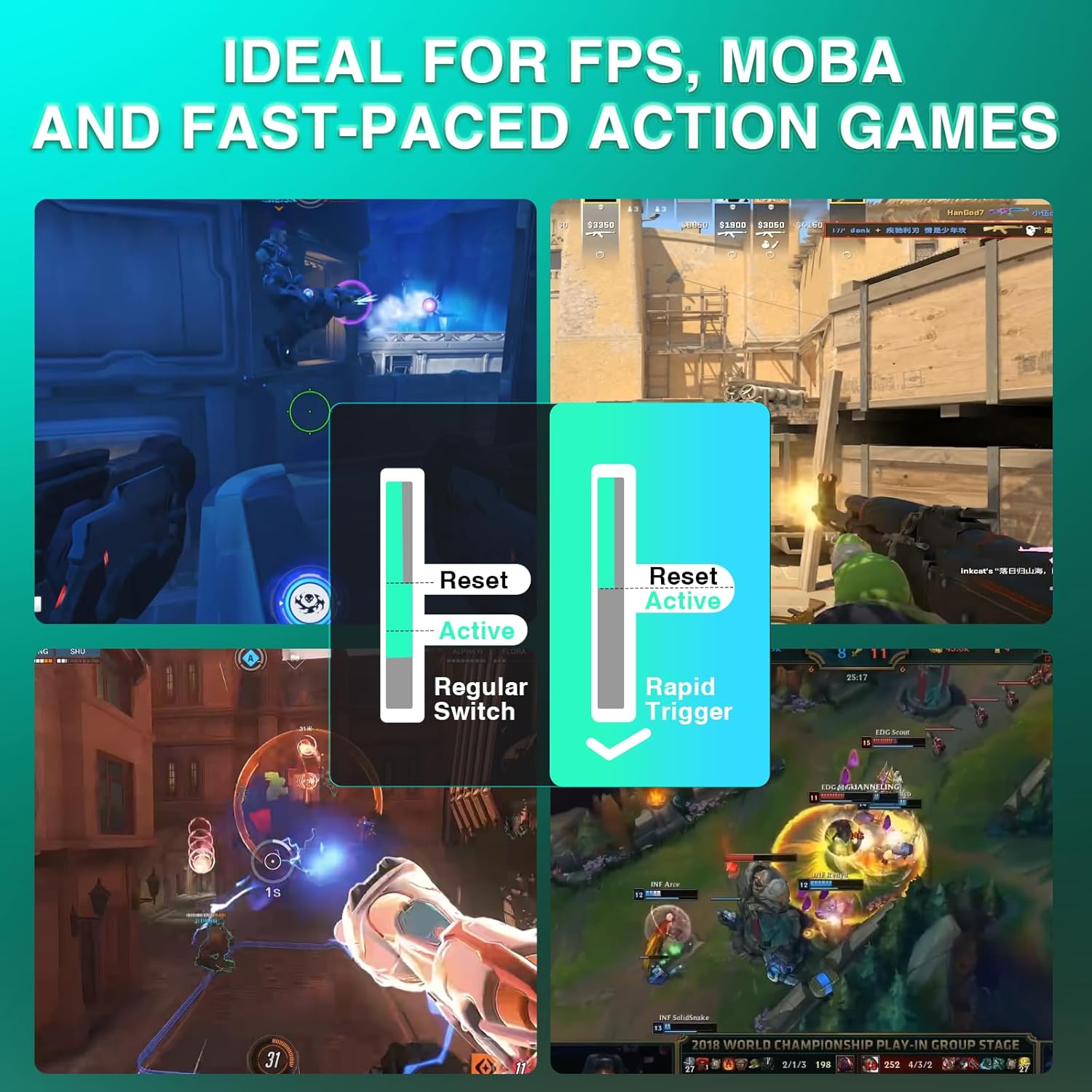 • ИГРОВА КЛАВИАТУРА RAPID TRIGGER В режим Rapid Trigger, WIN60 HE без усилие се справя със сложни маневри с несравнима скорост и прецизност, за да бъде една крачка пред играта. С ултра ниска стъпка на RT от само 0,02 мм, можете да регулирате точката на спиране на всеки клавиш от 0,02 мм до 3,44 мм, което ви позволява да контролирате бързи или ултра прецизни натискания на клавиши и да осигурите светкавично бързо време за реакция, идеално за бързи стрелби и сложни комбинации.