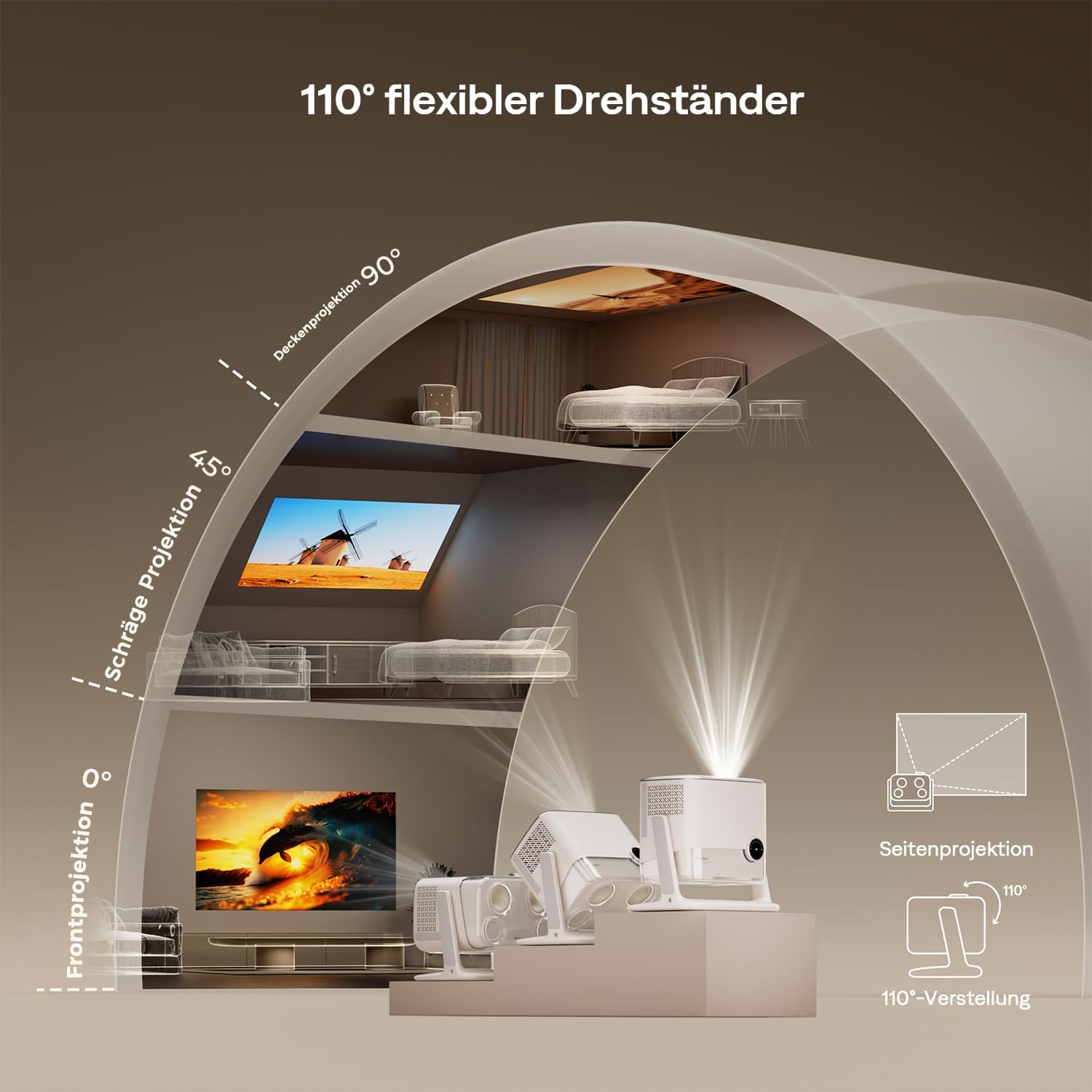 • 【Официален неограничен стрийминг, масивно забавление】BOOM Mini Smart Projector предлага вграден Google TV на големия ви екран, отключва над 10 000 приложения, включително Netflix, YouTube и труднооткриваемите, официално лицензирани + и Hulu. Не е необходим допълнителен стрийминг стик. С 2GB RAM + 16GB памет можете да се наслаждавате на плавно и непрекъснато забавление - просто го включете, включете и започнете.