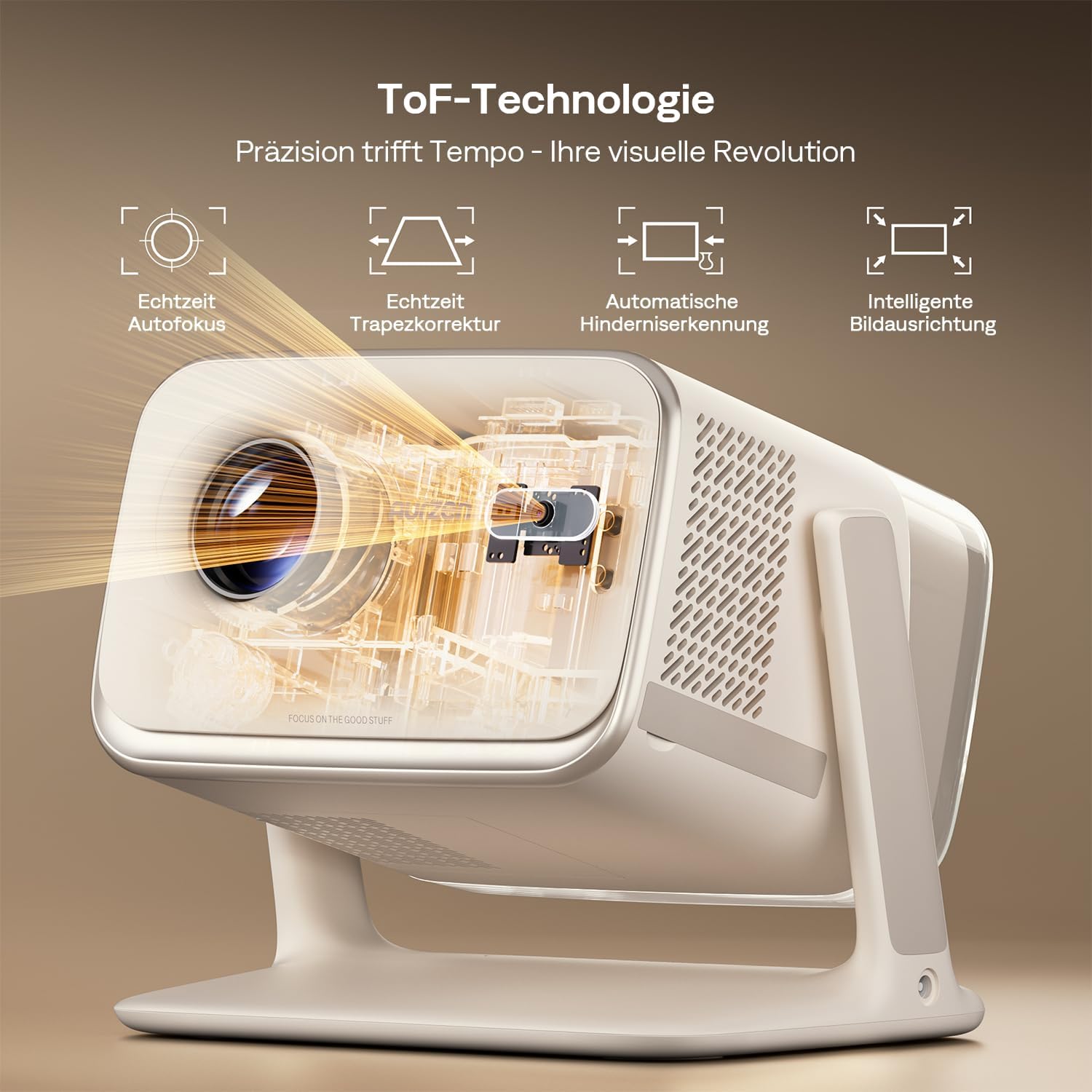 • Винаги на фокус, готов за 3 секунди: Захранван от усъвършенствана ToF технология, проекторът BOOM Mini 4K осигурява автофокус в реално време и корекция на трапецовидно изкривяване само за 3 секунди - много по-бързо от другите в своя клас. Дори ако бъде преместен или ударен, той незабавно се настройва, поддържайки визуалното изображение остро и вашето преживяване без прекъсвания. Осигурява завладяващо зрително изживяване.