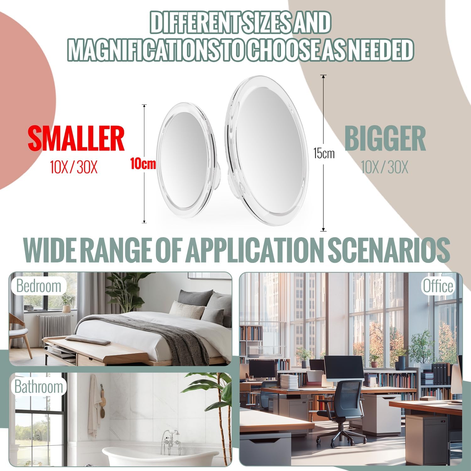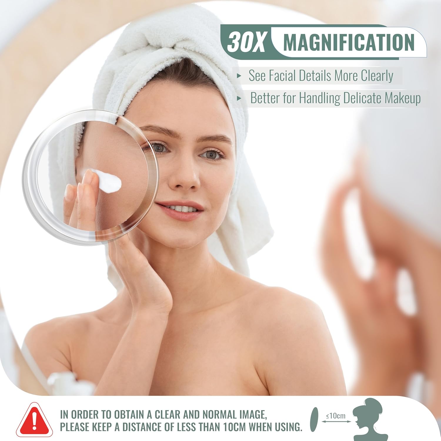Auxmir 30 x Увеличителни огледала 10 см 30x с 3 вендузи, кръгло огледало за грим с увеличение, огледало за грим за дома, банята и пътуването, премахване на черни точки / мехурчета