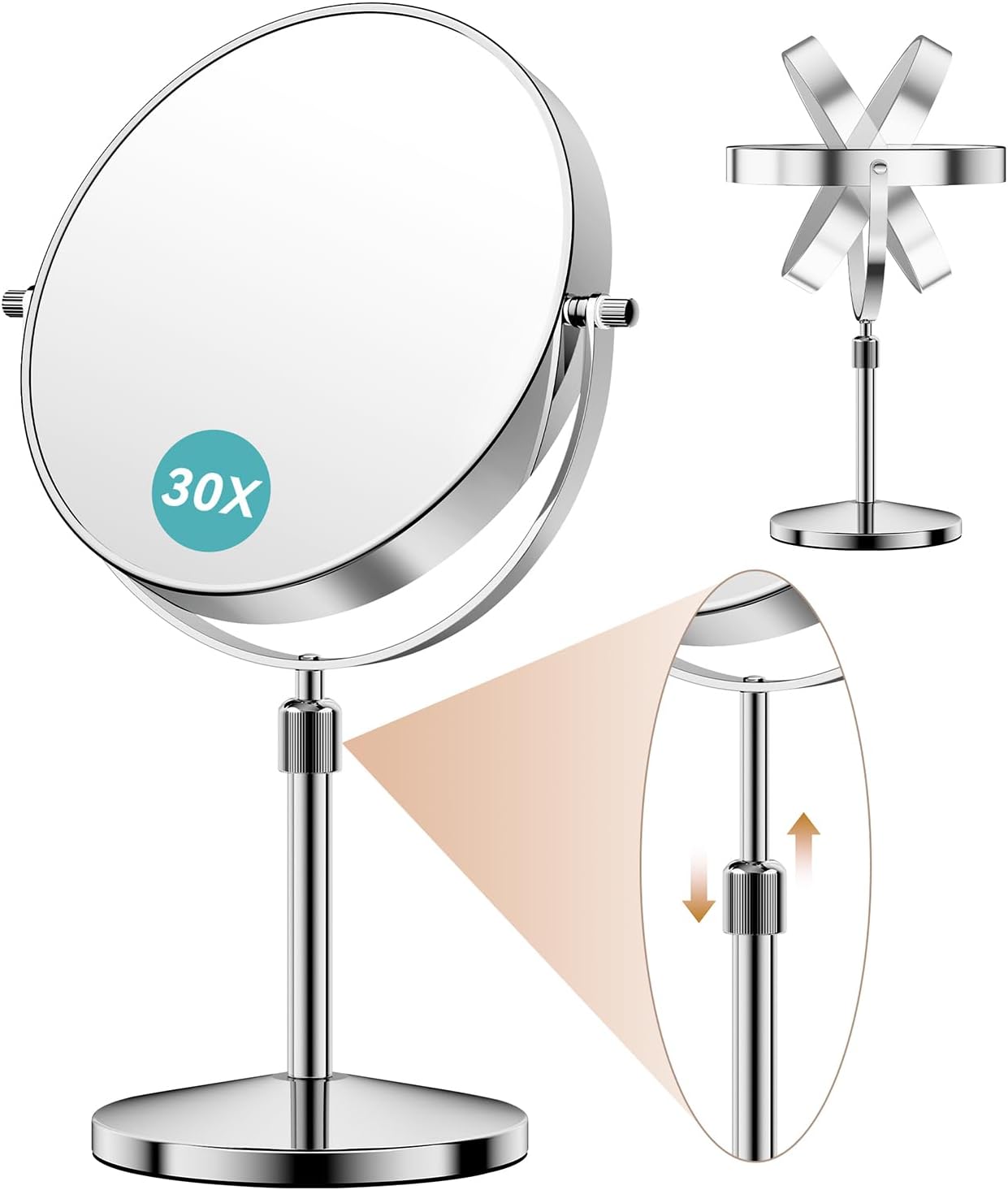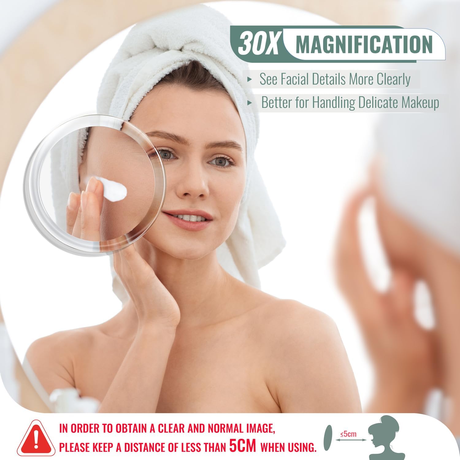 Auxmir 30 x Увеличителни огледала 15 см с 3 вендузи, Козметично огледало с 30x увеличение, Огледало за грим, Стенно огледало за дома, банята, пътуването