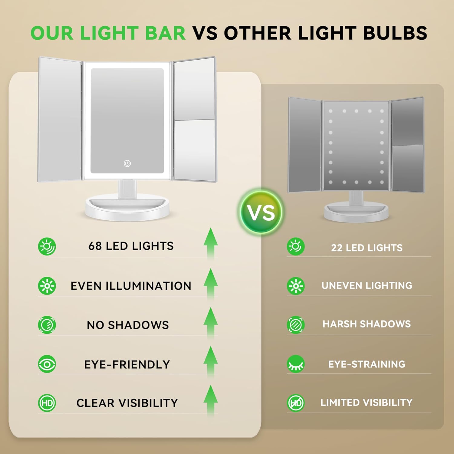 • ПЕРФЕКТЕН ПОДАРЪК ЗА СЕМЕЙСТВО И ПРИЯТЕЛИ: Висококачествената изработка и изящните детайли правят това огледало за грим не само модерно, но и практично и функционално. То е идеално за ежедневен грим, бръснене и грижа за лицето и др. Можете да подарите това огледало на вашето семейство и приятели.