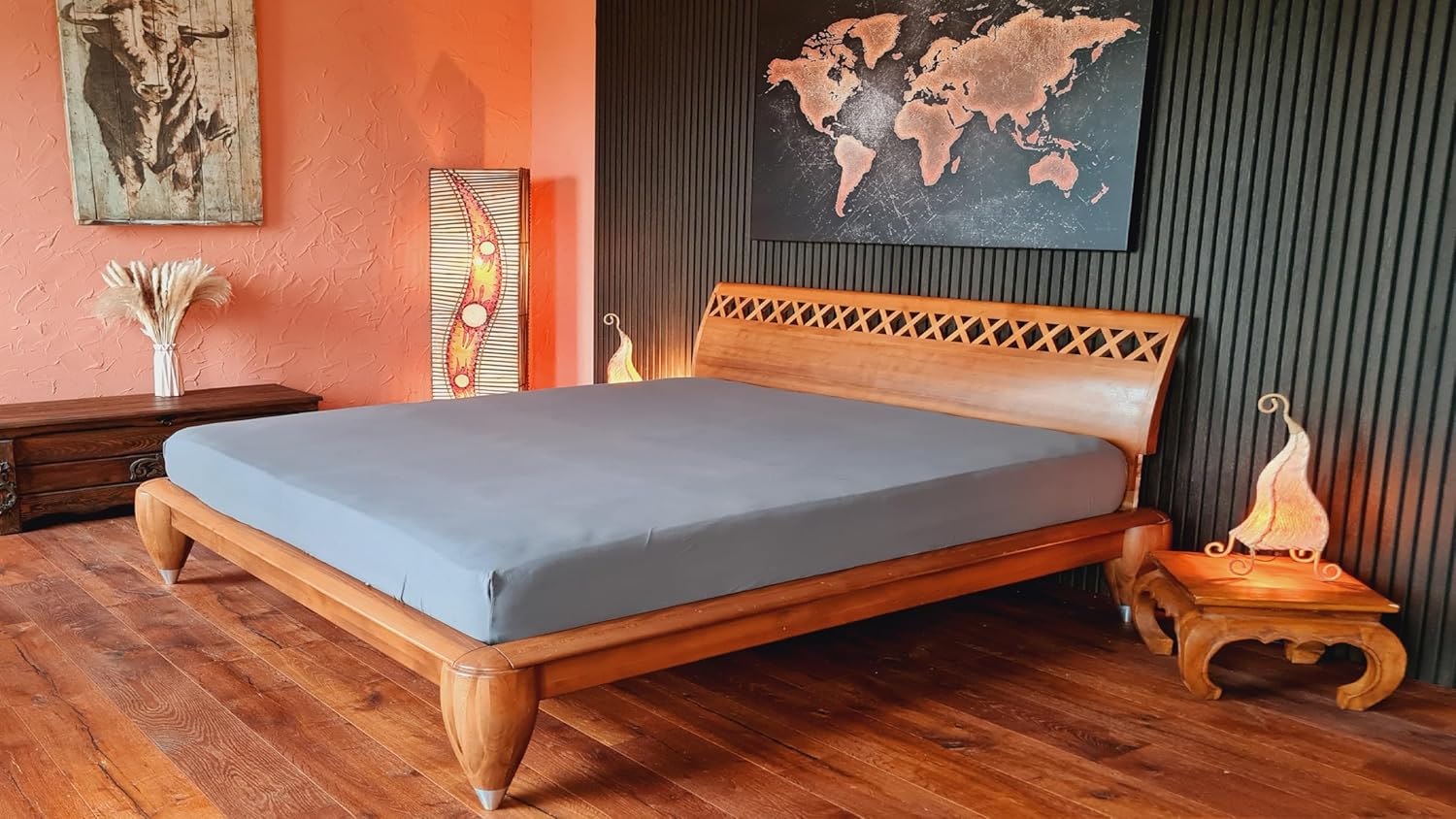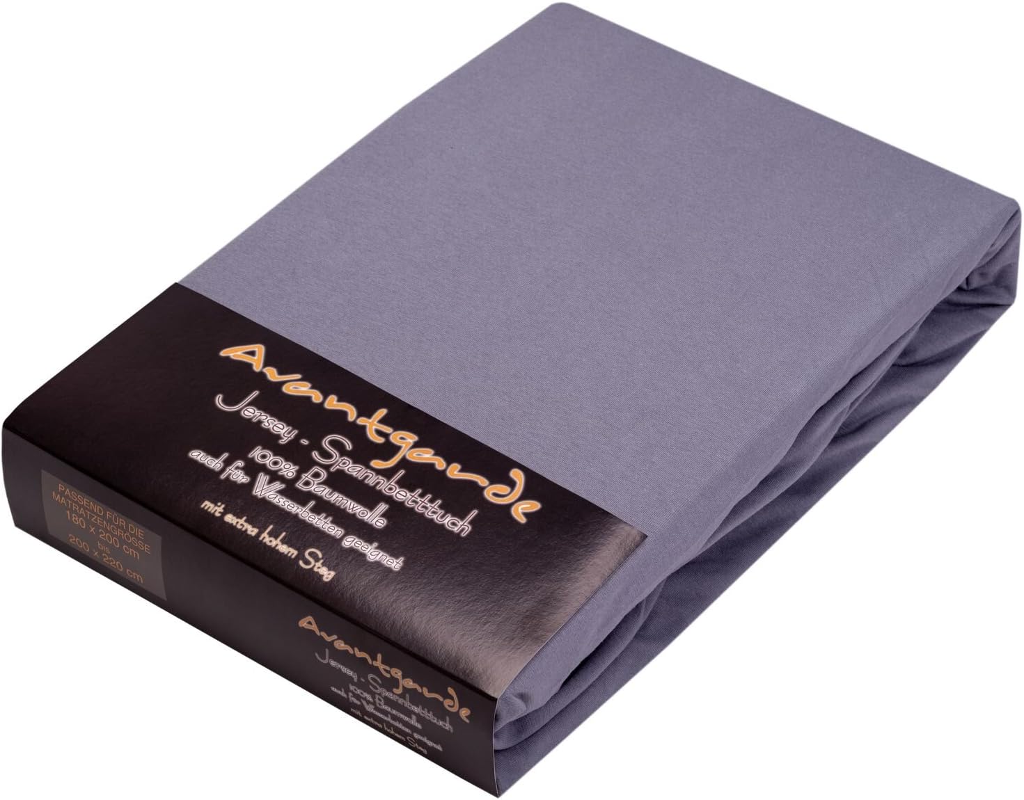 Авангарден чаршаф с еластична материя - 180 x 200 - 200 x 220 - 40 см мост - подходящ за легла с пружинен подматрачен матрак и водни легла - Много добър чаршаф с еластична материя, приблизително 170 г/м² - плосък чаршаф, 100% джърси памук, Oeko-Tex (12 сив)