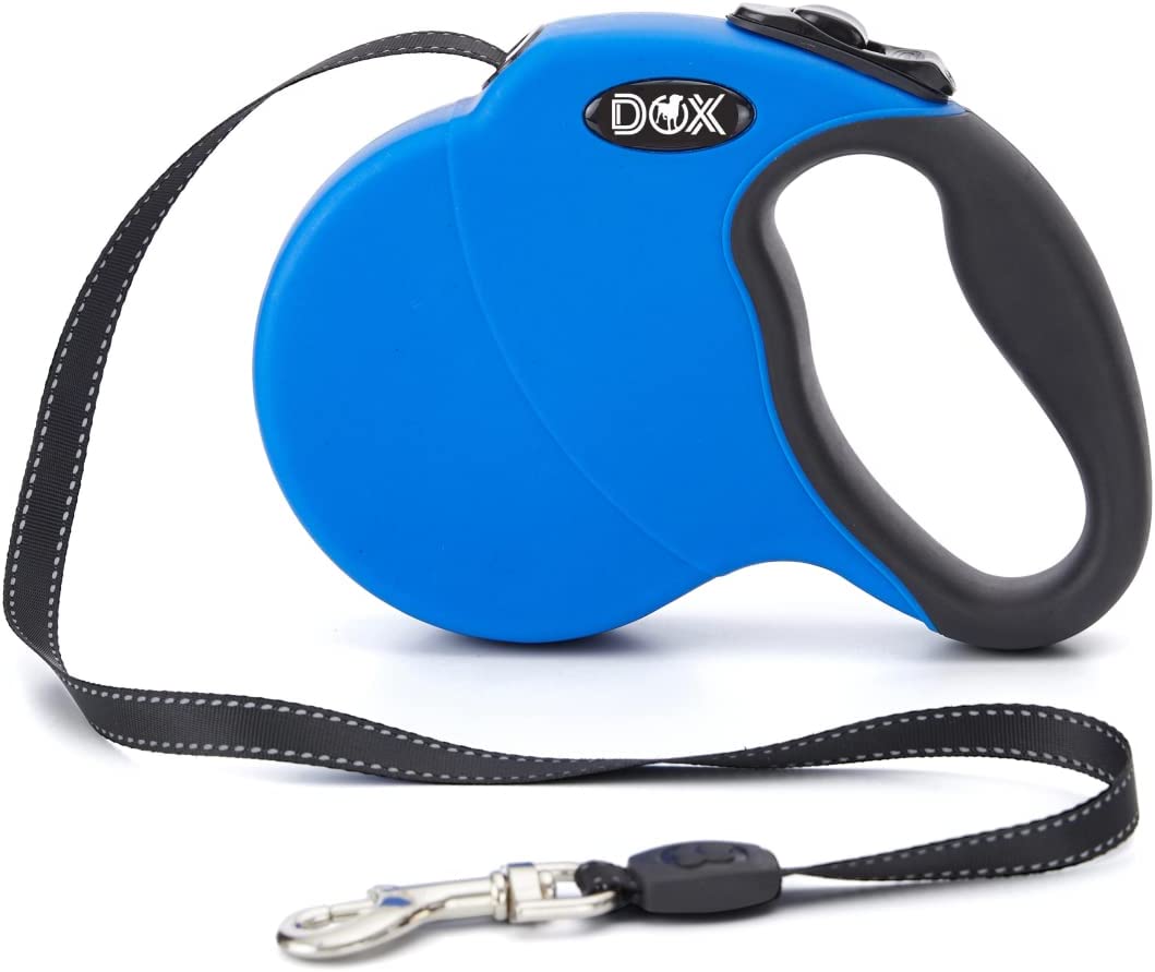 Автоматичен повод за кучета DDOXX, До 5 метра дължина, До 20кг, 1.2 см ширина на каишката, Спирачен бутон, Син