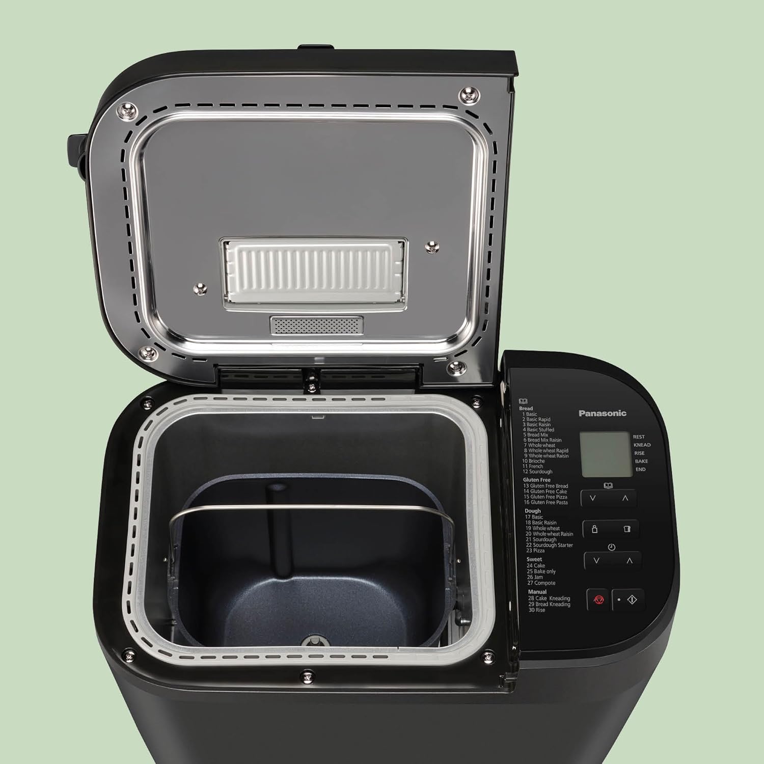 Автоматична машина за хляб Panasonic SD-R2530K, програми без глутен и диспенсър за ядки, хоризонтален дизайн, 30 автоматични програми, два температурни сензора, 13-часов таймер, черен цвят