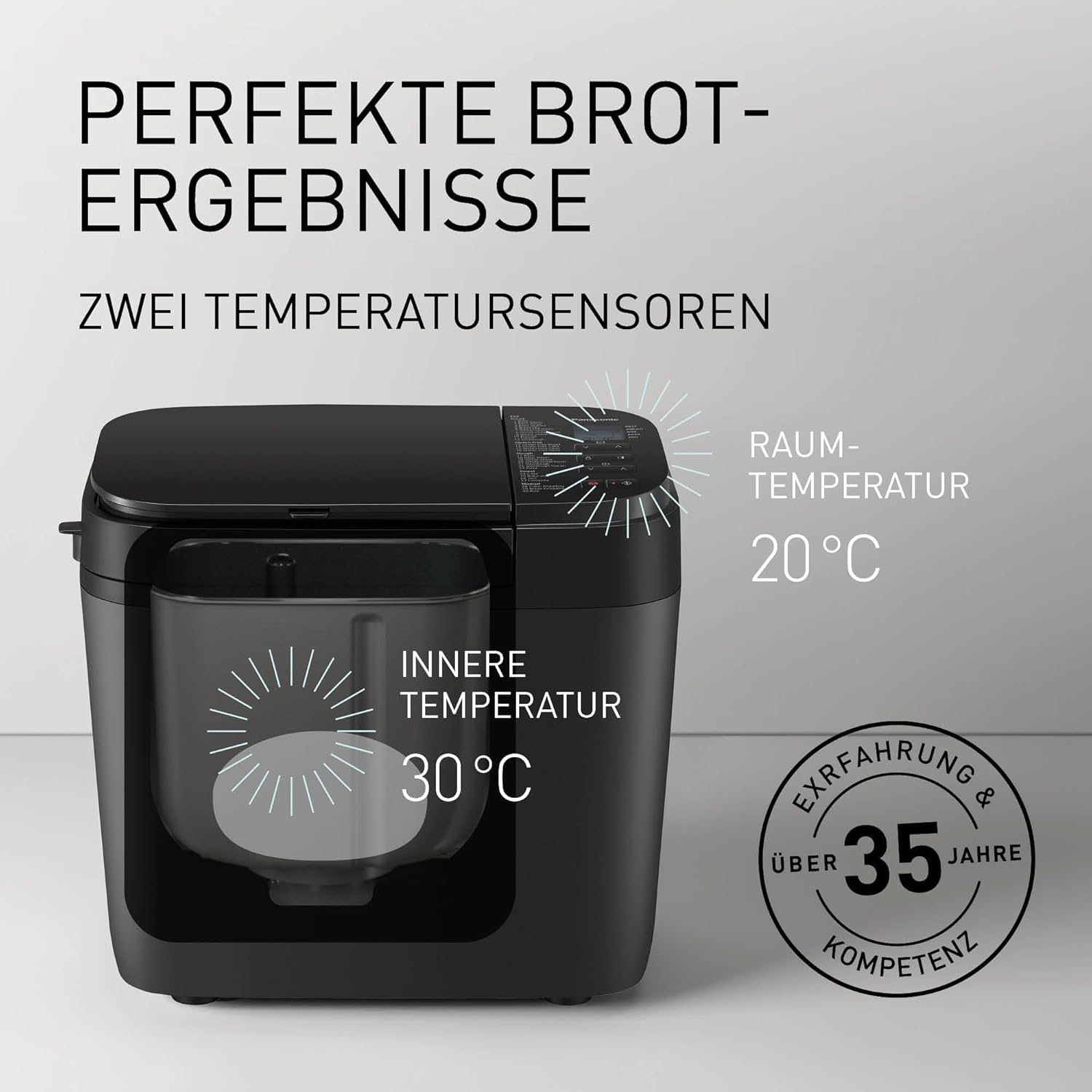 • ДВА ТЕМПЕРАТУРНИ СЕНЗОРА: тази машина за хляб има два вградени сензора за определяне на вътрешната и външната температура, за да оптимизира всяка програма и да ви осигури възможно най-доброто качество на хляба