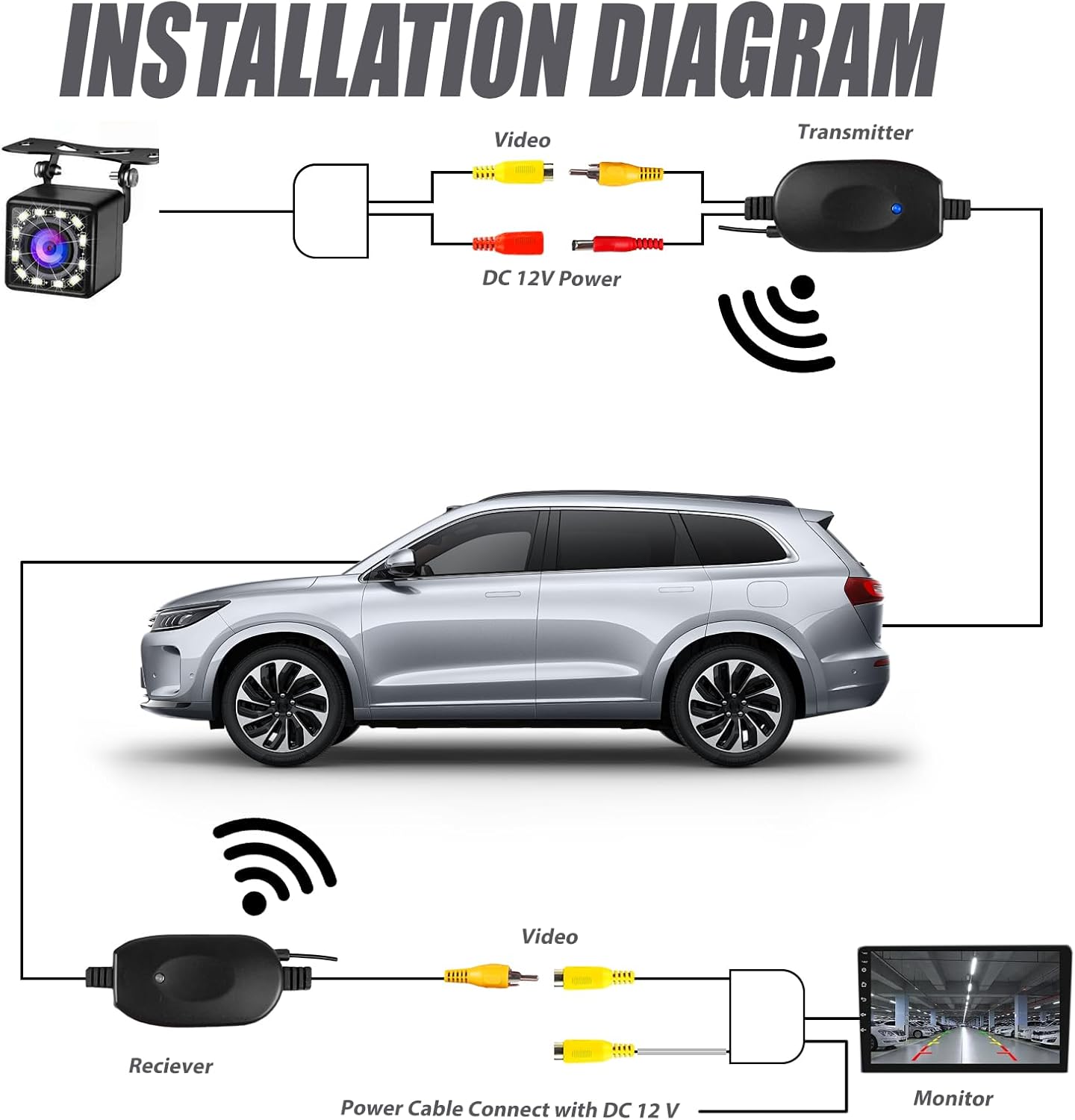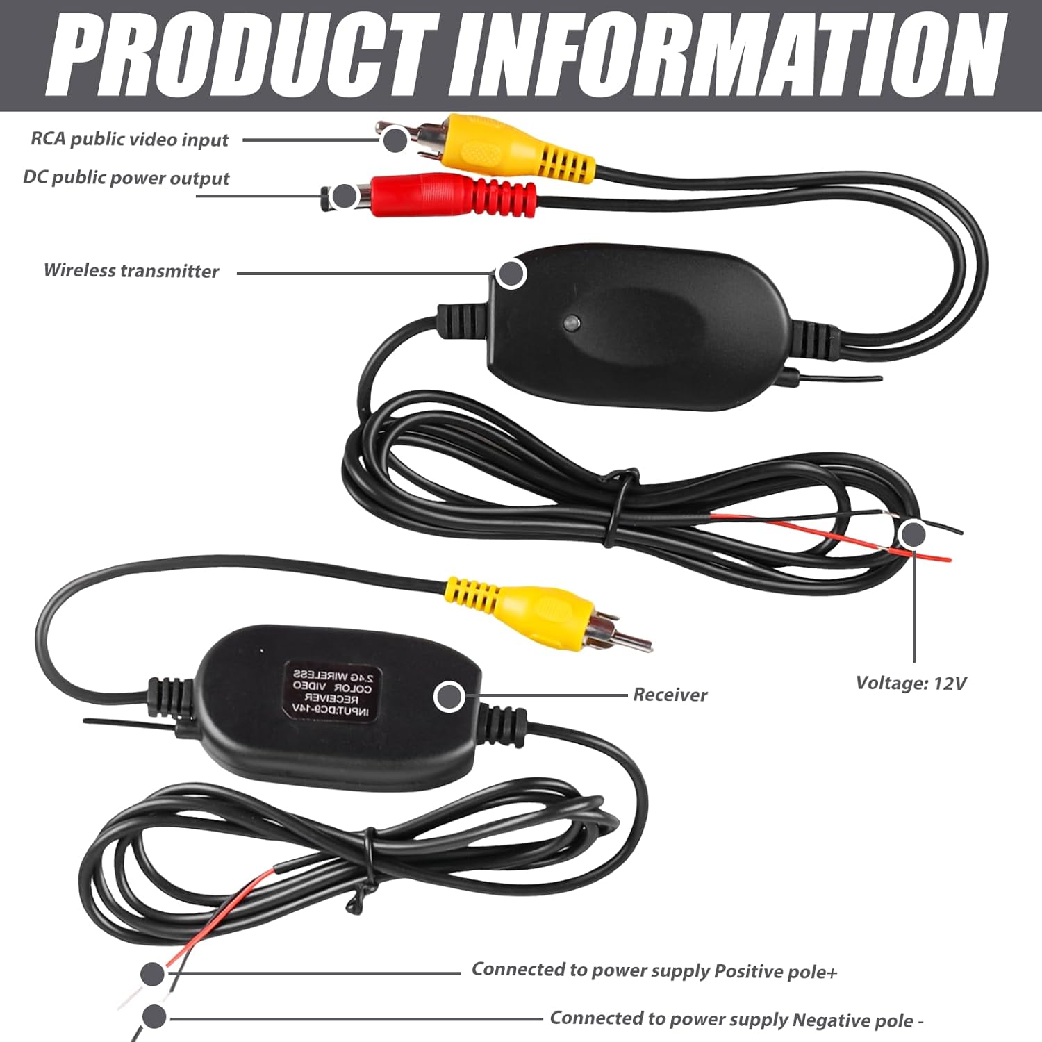 Автомобилен 2.4G безжичен цветен видео предавател и приемник, автомобилен предавател-приемник за камера за заден ход на автомобила, автомобилен безжичен приемник за автомобилна камера 12V цветен видео предавател
