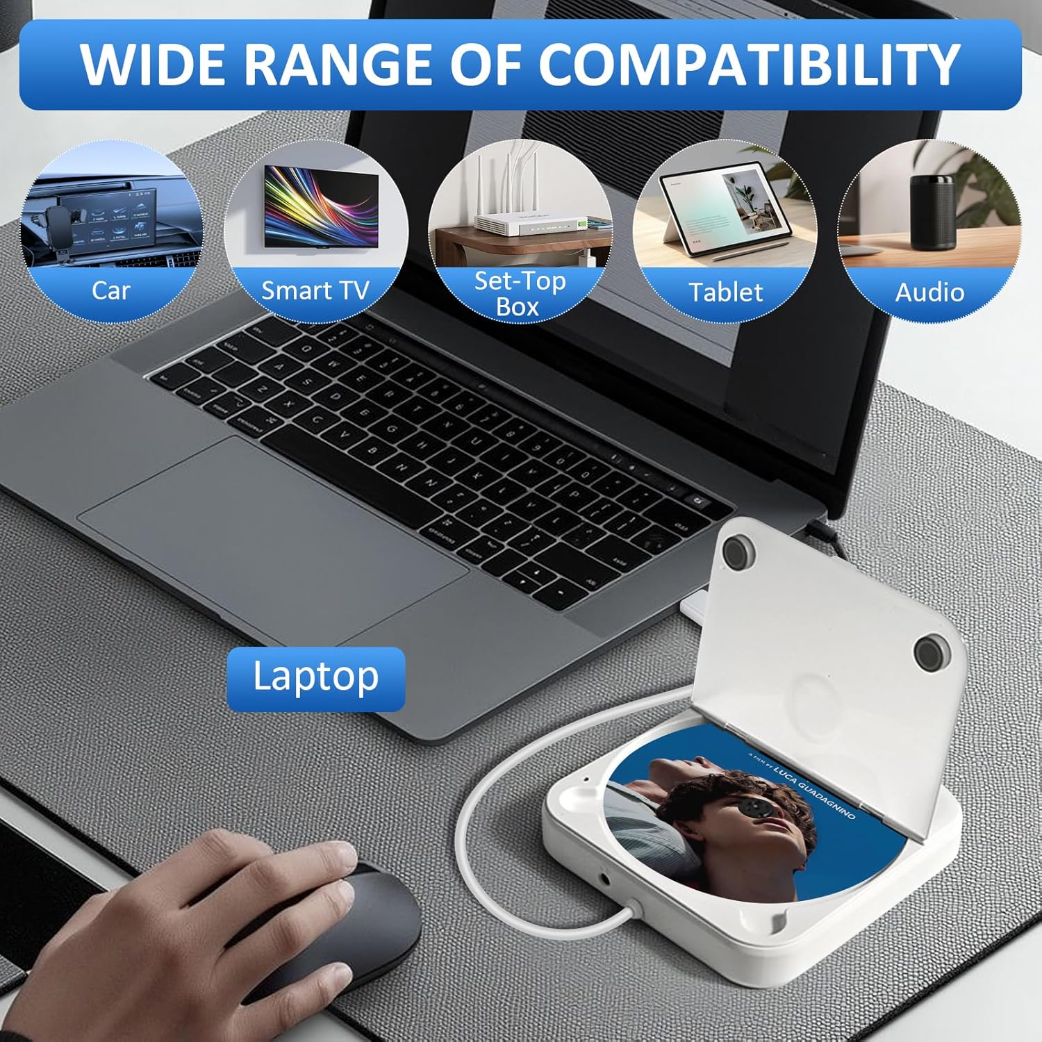 Es gibt zwei Möglichkeiten, ein Auto anzuschließen. Die erste besteht darin, den USB-Anschluss direkt mit dem USB-Datenanschluss des Autoradios zu verbinden (Plug-and-Play). Die zweite Möglichkeit ist die Verbindung über ein AUX-Audiokabel. Stecken Sie den USB-Anschluss des CD-Players in den USB-Anschluss des Autos oder schließen Sie ihn direkt an die Stromversorgung an. Verbinden Sie dann den CD-Player mit einem 3,5-mm-AUX-Audiokabel mit dem AUX-Audioanschluss des Autos. Wählen Sie den AUX-Modus, um die Musik von der CD abzuspielen. (Verschiedene Modelle haben leicht unterschiedliche Schnittstellen und Bedienungsmethoden. Bitte passen Sie diese an Ihre Situation an.)