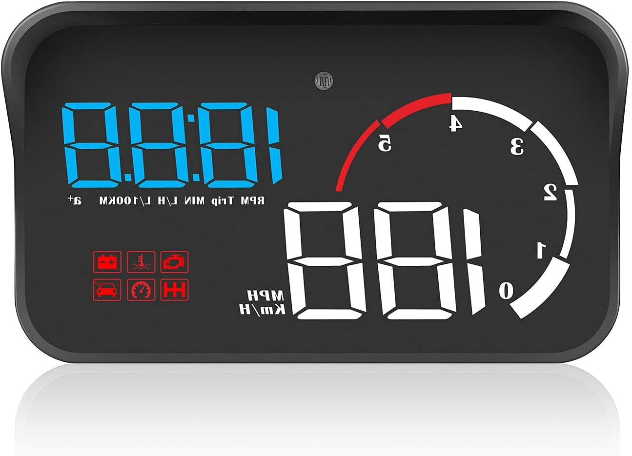 - Разполага с 18 режима на показване на информация за шофирането, включително моментен разход на гориво, ускорение от 100 км/ч, температура на водата, напрежение, скорост, изминато разстояние, време на шофиране и часовник. Можете да промените желания режим.