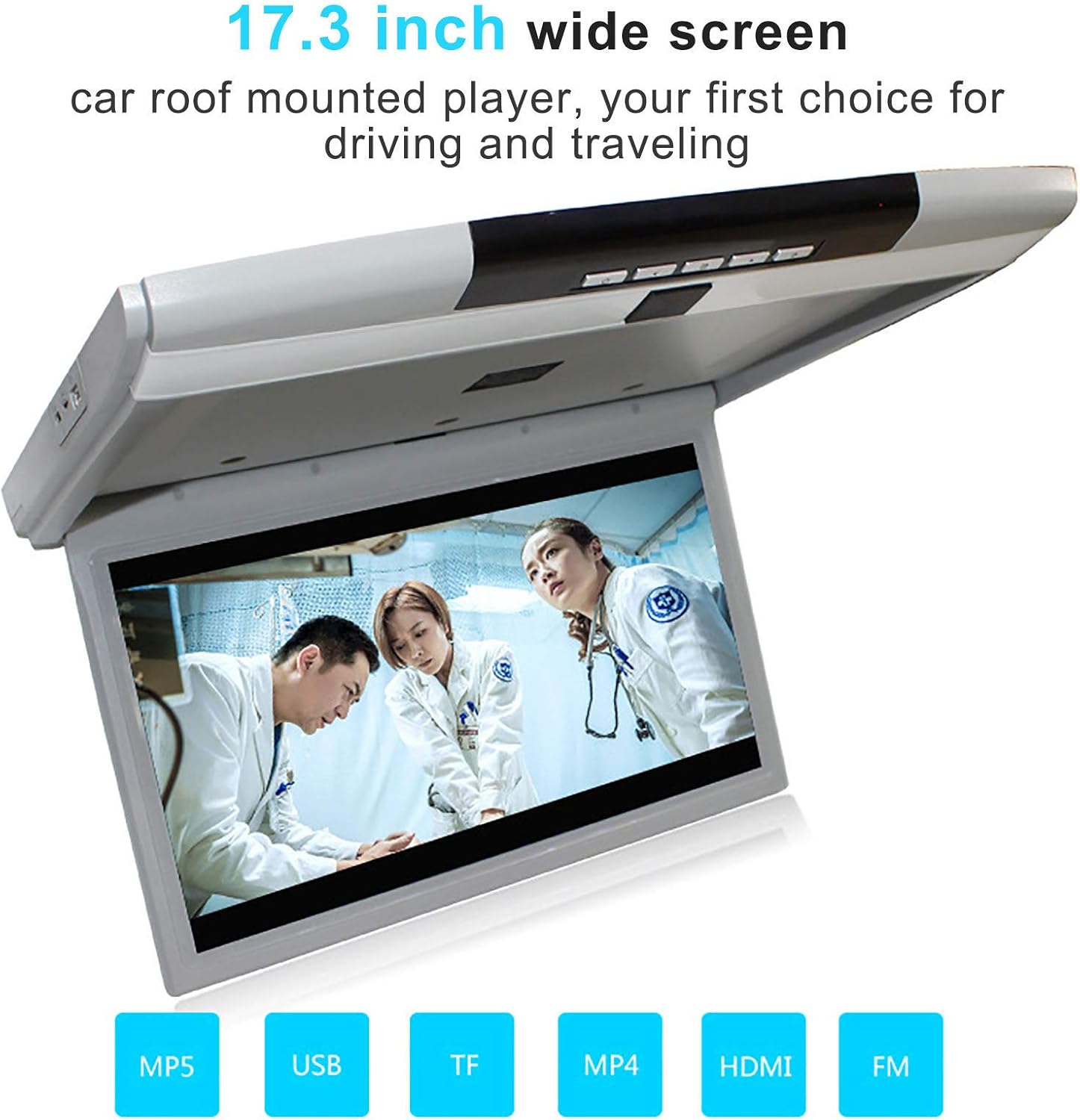 Der Dachmontage-Player für Autos verfügt über eine Full-HD-Unterstützung für klare Sicht. Mit 17,3-Zoll-LED-Breitbild-Display, das eine perfekte Unterhaltungslösung für Ihr Auto bietet und ein komfortables Seherlebnis gewährleistet und für Wohnwagen, Schulbusse, Kleinbusse und Busse mit 7 oder mehr Sitzplätzen geeignet ist