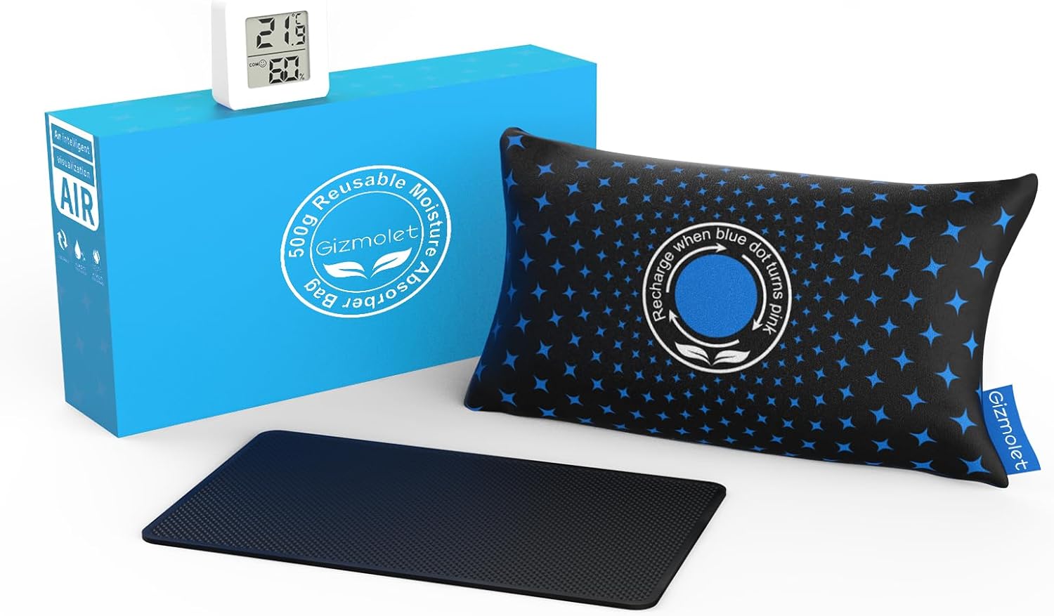 • Защита от течове и гъвкаво управление: разработен за шкафове за оръжия, автомобили и други затворени пространства, регенериращият се влагоабсорбатор абсорбира влагата без течове. Включената противоплъзгаща подложка го държи здраво на място и предотвратява подхлъзване по време на шофиране.