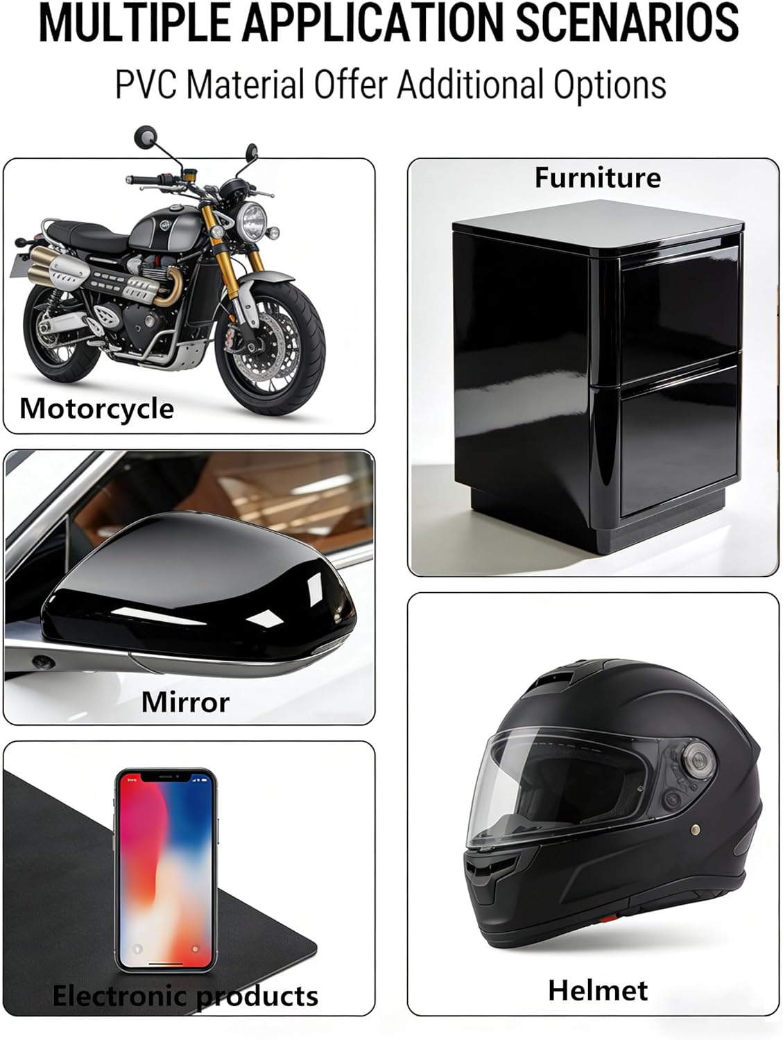 Автомобилно фолио за защита на каросерията, устойчиво на надраскване, технология за освобождаване на въздух, 30.5 x 152 см, гланцово черно фолио за опаковане на автомобили, винилово фолио