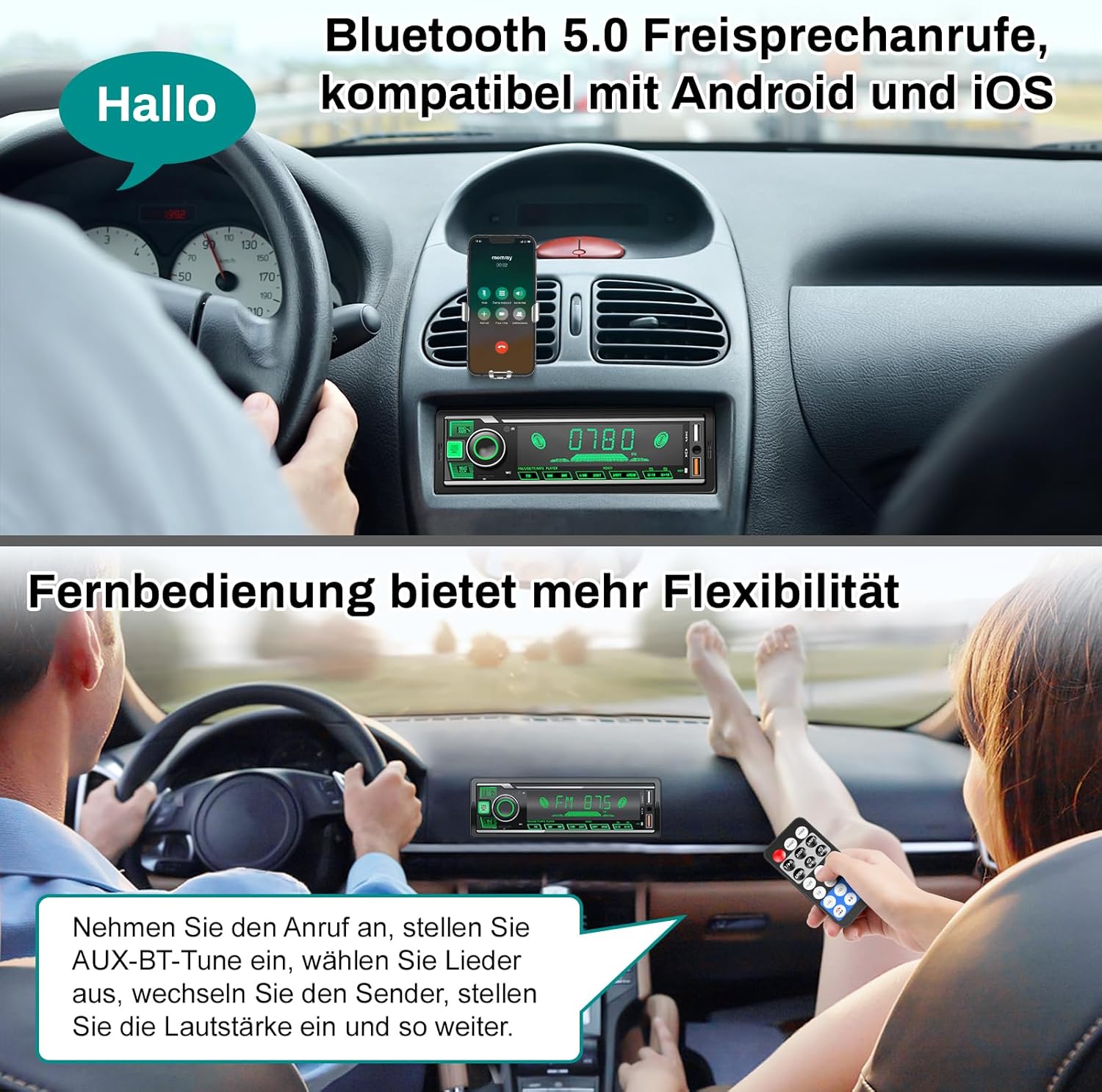• Автомобилно радио с Bluetooth Hands-Free разговори: Това автомобилно радио е с Bluetooth 5.0 за по-бързи и по-стабилни връзки. Наслаждавайте се на разговори със свободни ръце и безпроблемно възпроизвеждане на музика с вградената Bluetooth функция.