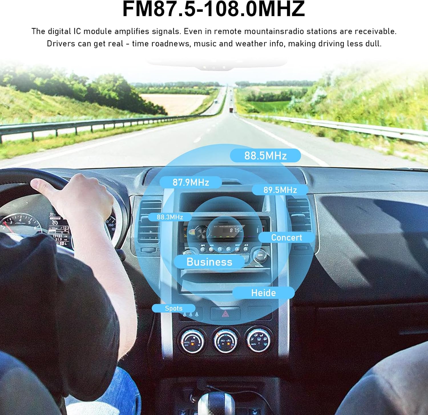 1. РАЗШИРЕНА BLUETOOTH ТЕХНОЛОГИЯ - Bluetooth автомобилното радио използва Bluetooth 5.0 за стабилни връзки с iOS/Android. Това Bluetooth автомобилно MP3 радио позволява ясни разговори със свободни ръце и бързо сдвояване в рамките на секунди.