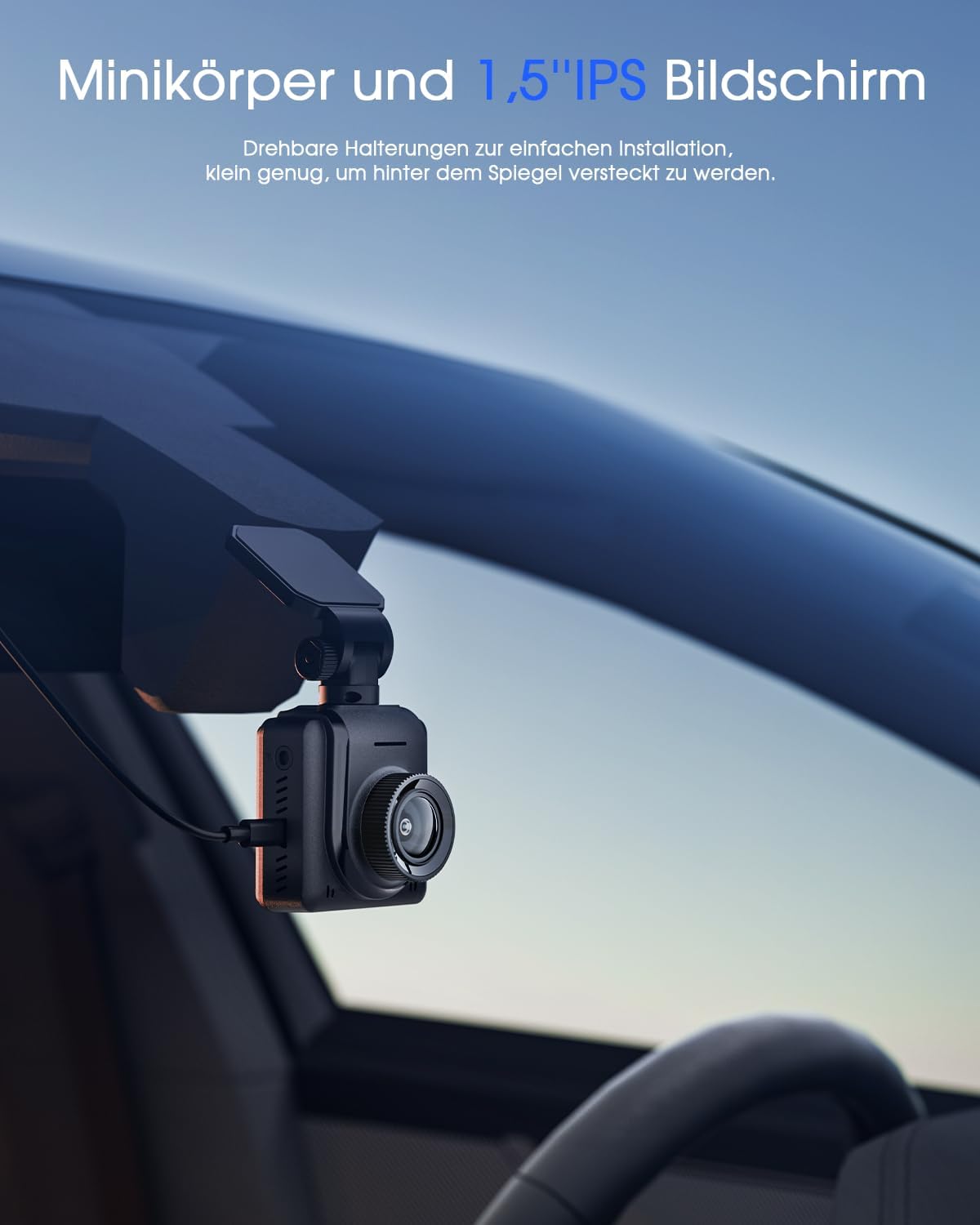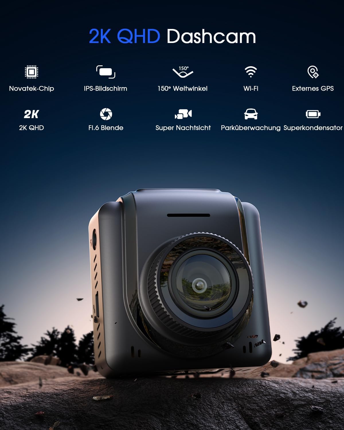 • Истинска 2K резолюция и 150° широкоъгълен обхват: Видеорегистраторът осигурява кристално ясни 2K записи – идеални за разпознаване на регистрационни номера и пътни знаци. Със 150° широк ъгъл, вие заснемате по-голяма част от пътя и минимизирате слепите зони. Забележка: Моля, отстранете защитното фолио на обектива след разопаковане, тъй като в противен случай това може да влоши качеството на изображението.