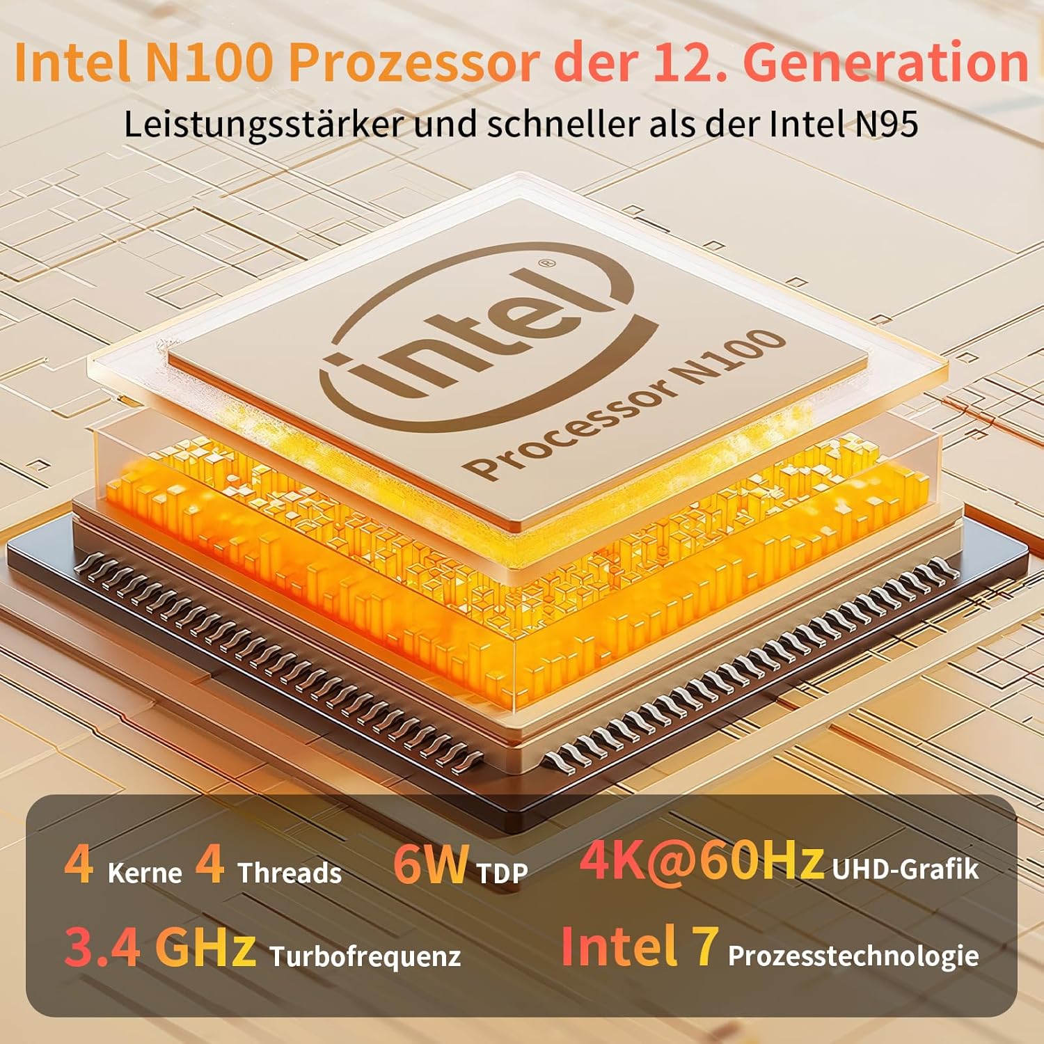 • Бърза производителност с Intel N100 и 12GB RAM. Процесор Intel N100 (четириядрен) за плавна многозадачност. 12GB LPDDR5 RAM за бързо превключване между приложения и стабилна производителност. 256GB PCIe SSD.