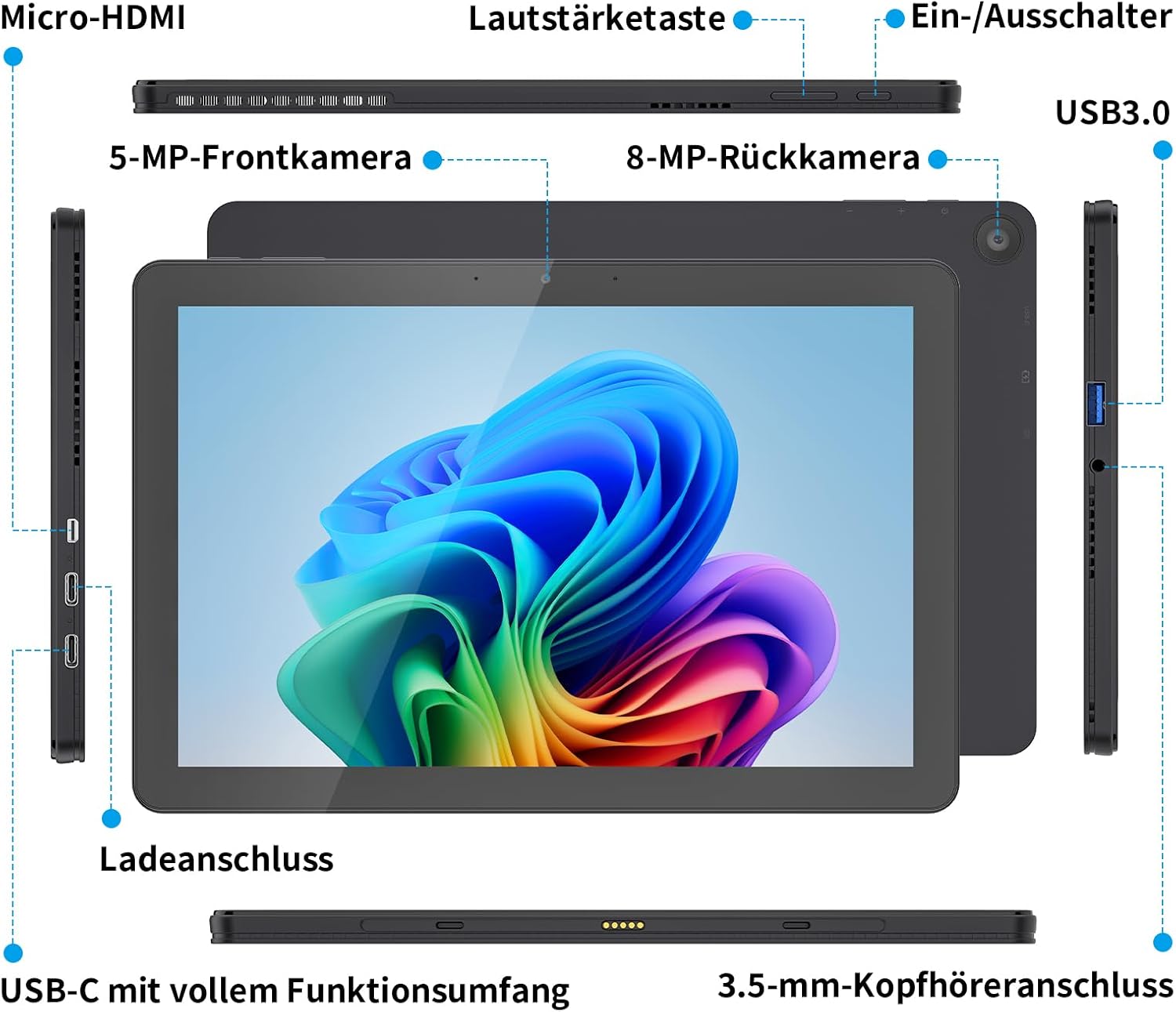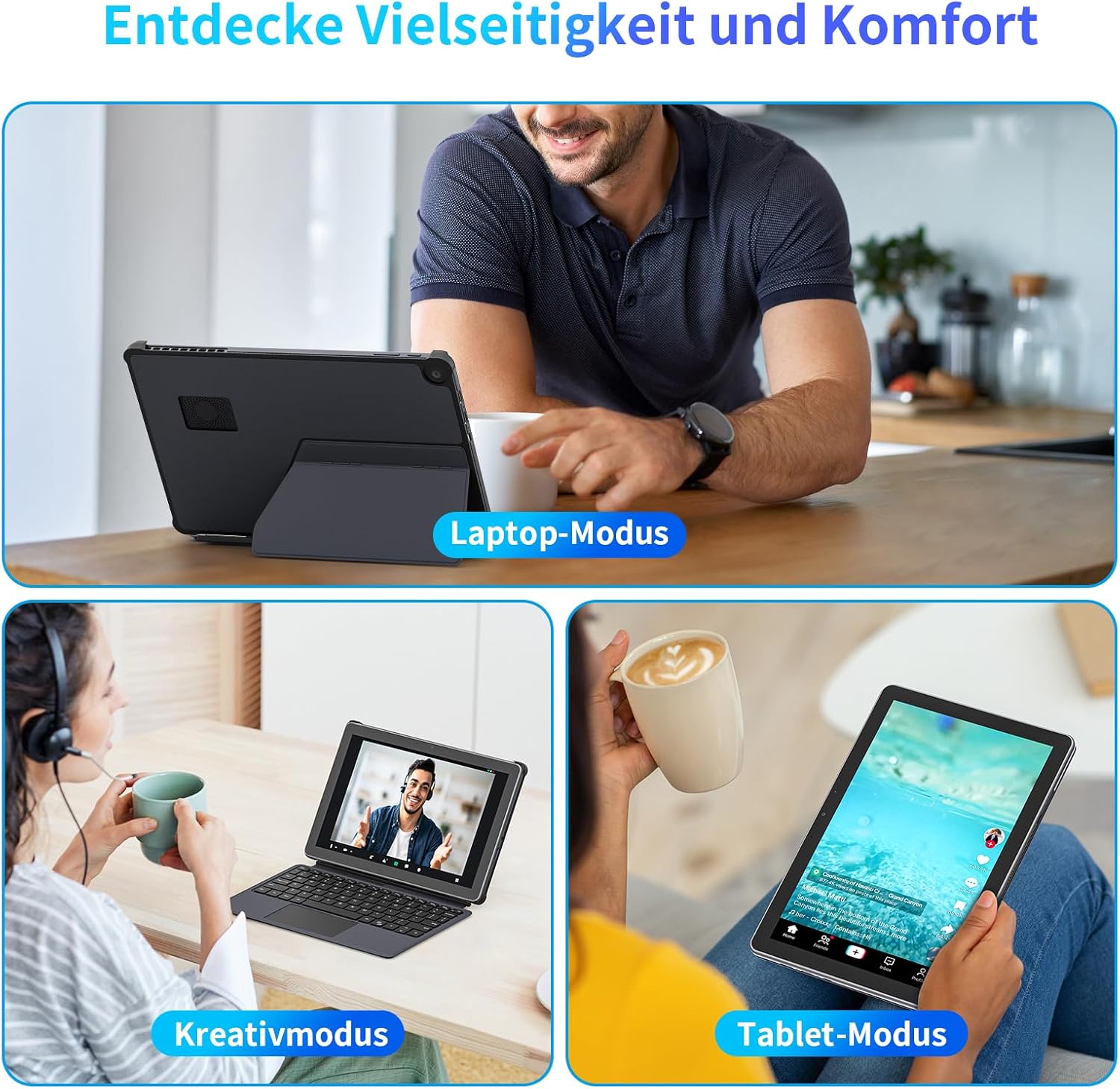 • 1. Мощен 2-в-1 таблет с Wi-11 и вградена клавиатура ✔ Съчетава гъвкавостта на таблет с производителността на лаптоп ✔ Практична немска клавиатура за удобно писане (вкл. тъчпад) ✔ Предварително инсталиран Wi-11 Home за пълни функции на компютъра и съвместимост със софтуера