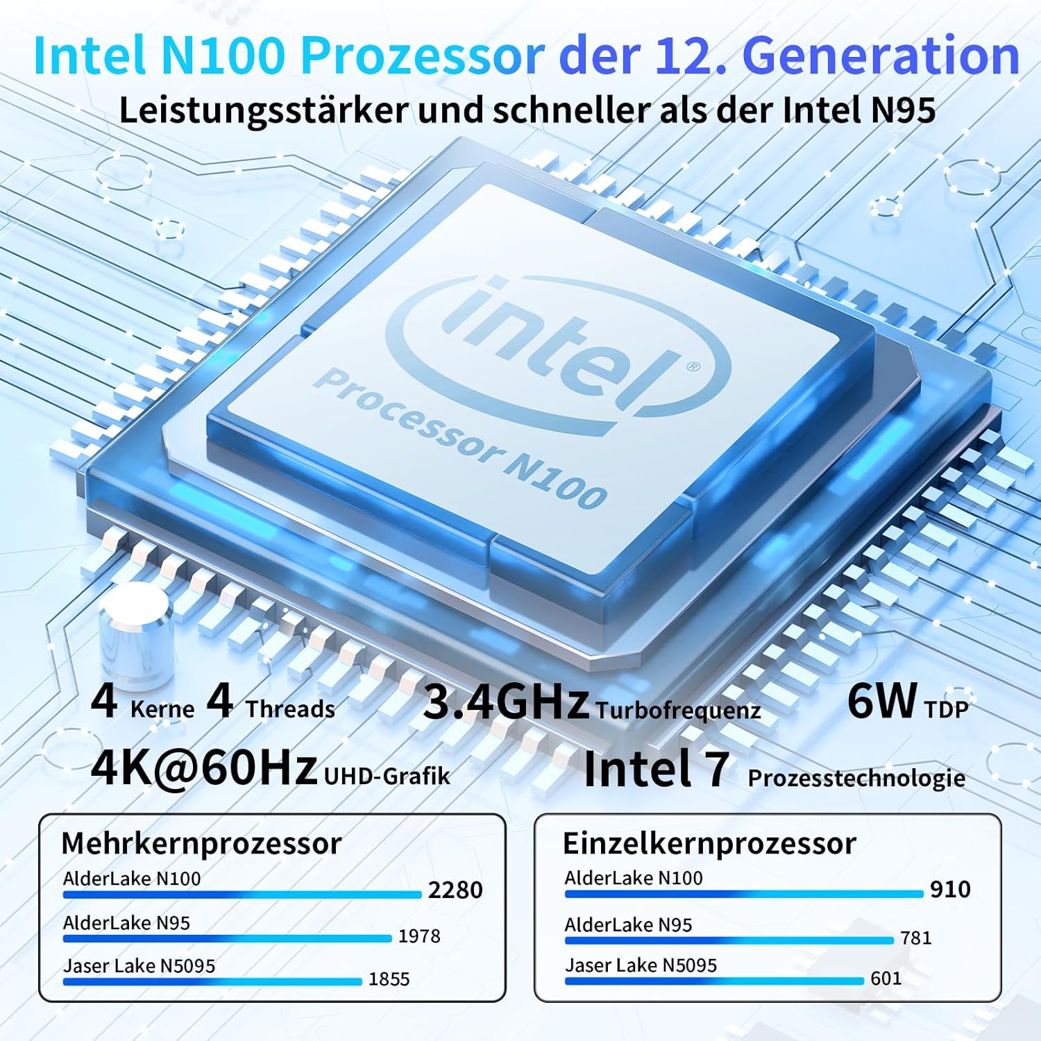 • 2. Бърза производителност благодарение на Gen12 N100 и 12GB LPDDR5 RAM ✔ Процесор Gen12 N100 (четириядрен, до 3.4 GHz) – идеален за офис, мултимедия и ежедневни задачи ✔ 12GB LPDDR5 RAM – плавна многозадачност и бързо превключване между приложения ✔ 256GB PCIe SSD (по-бърз от eMMC)