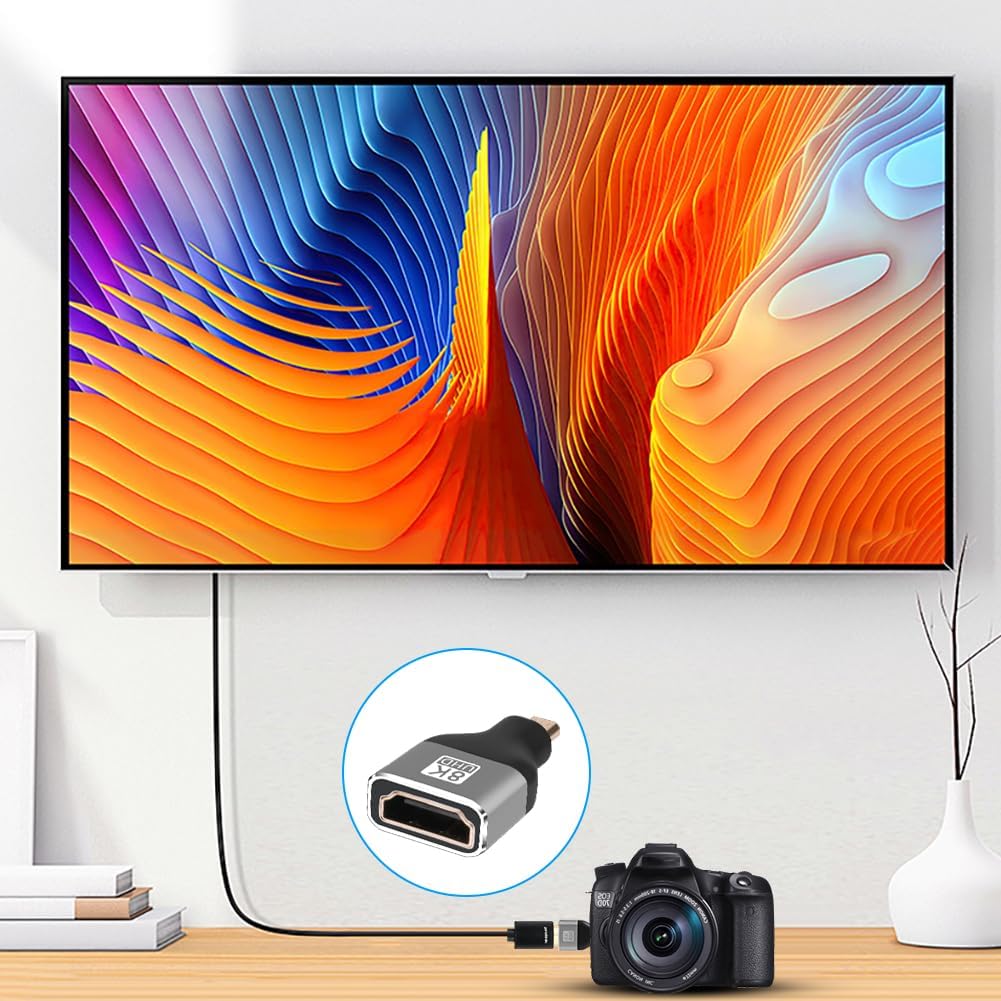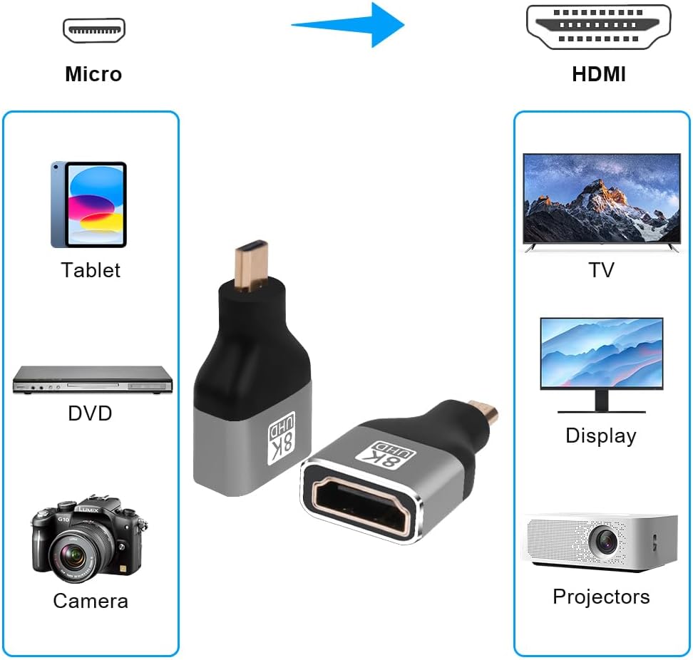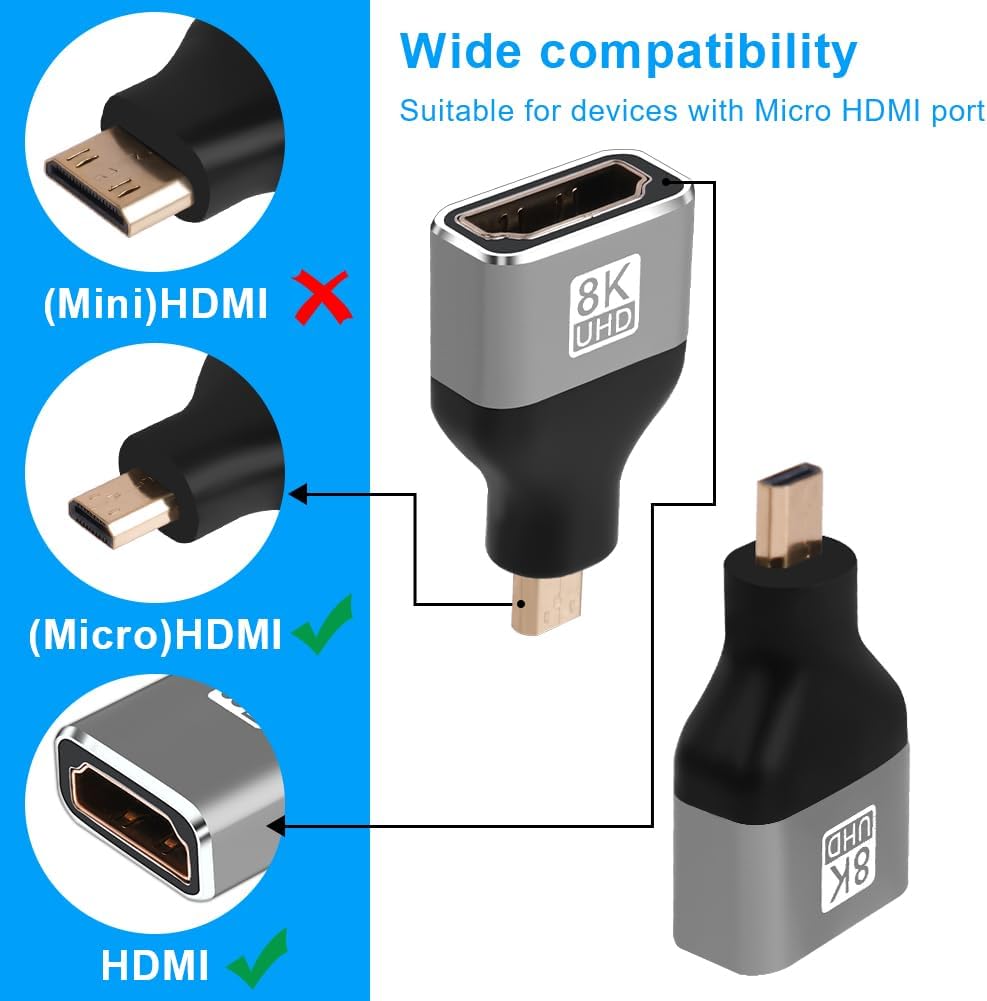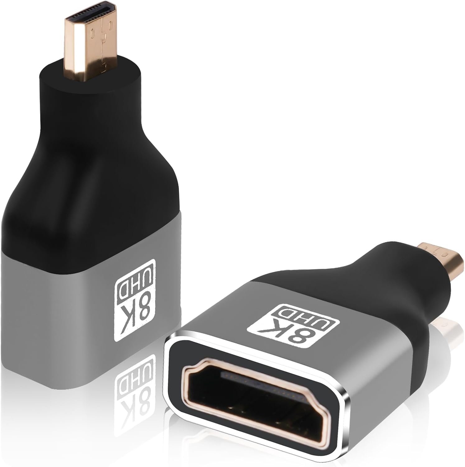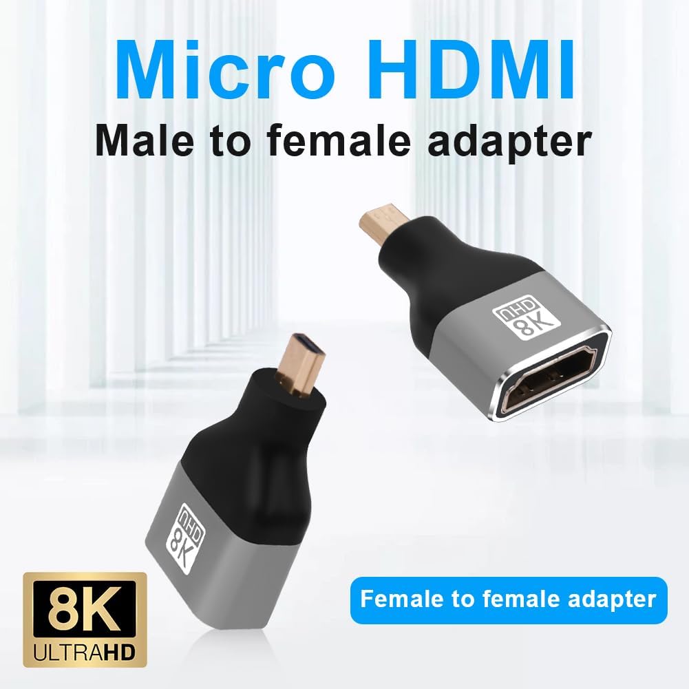 AXFEE 2 бр. Micro мъжки към HDMI женски адаптер Micro към HDMI HDMI удължител Поддръжка 8K/@60Hz резолюция 1080P за компютър, таблет, видеокамера, монитор, телевизор