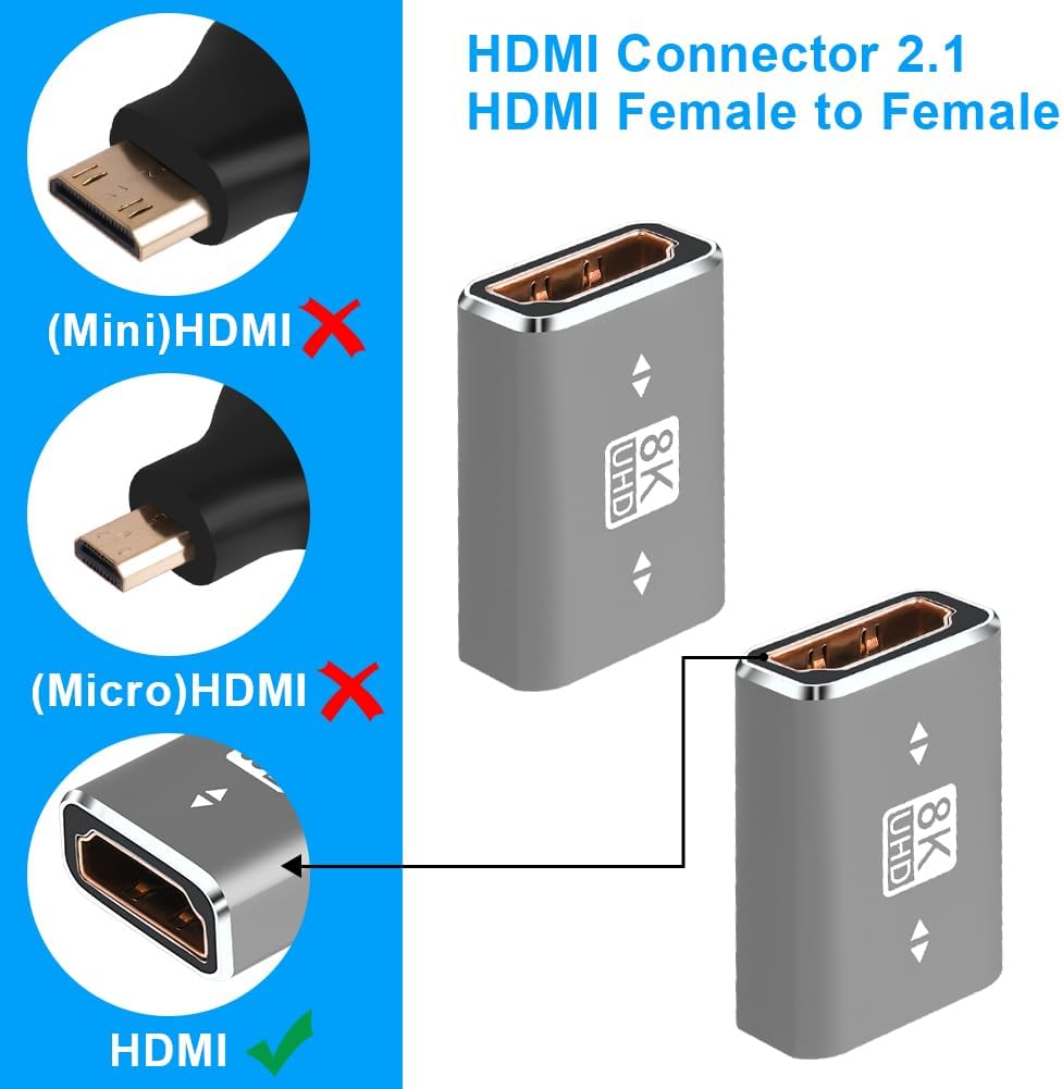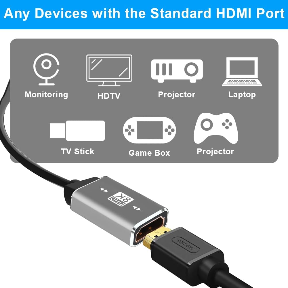 AXFEE 2 броя Micro женски към HDMI женски HDMI адаптер, съвместим с HDMI порт, HDMI удължител, поддръжка на 8K/@60Hz 1080p резолюция за компютър, таблет, видеокамери, монитор,