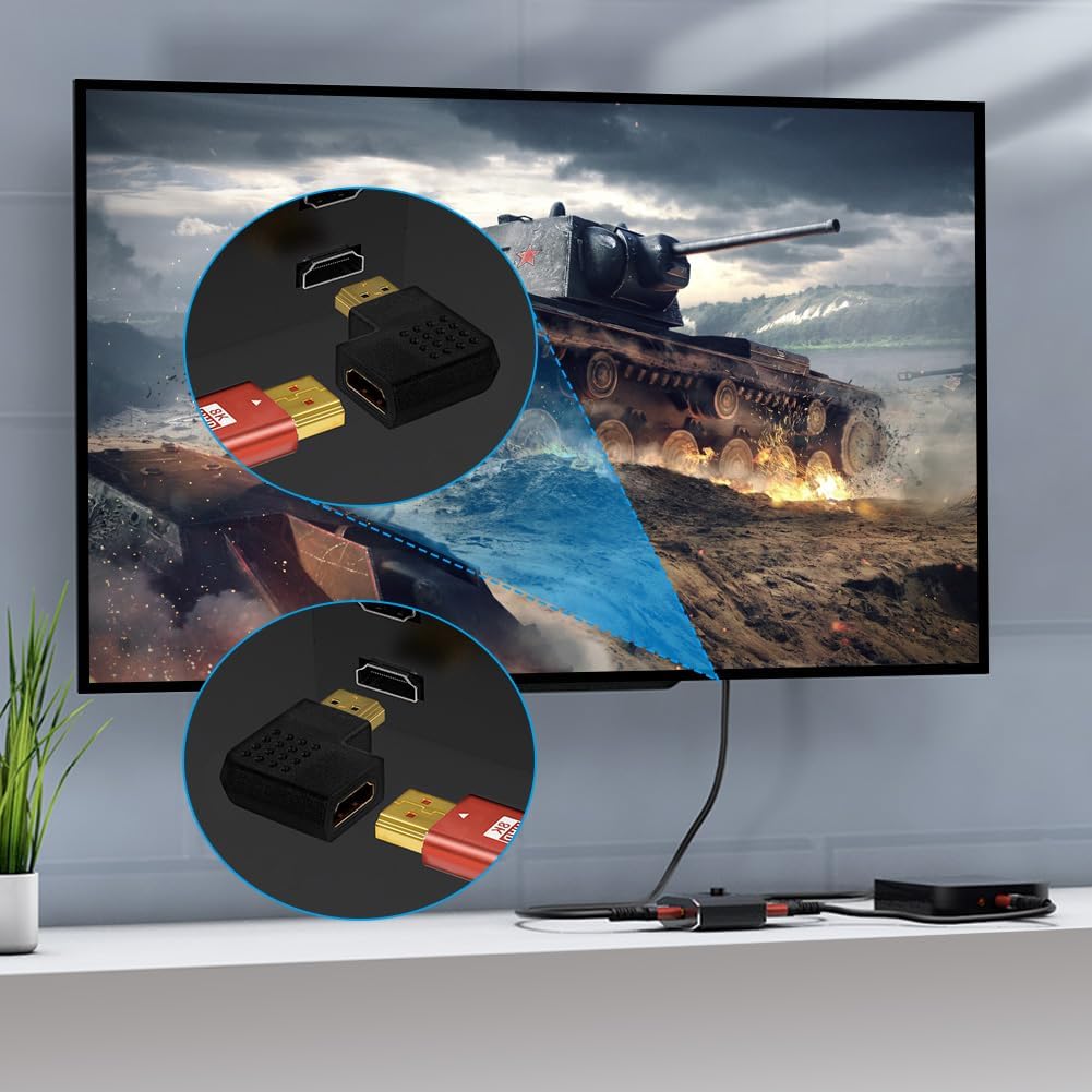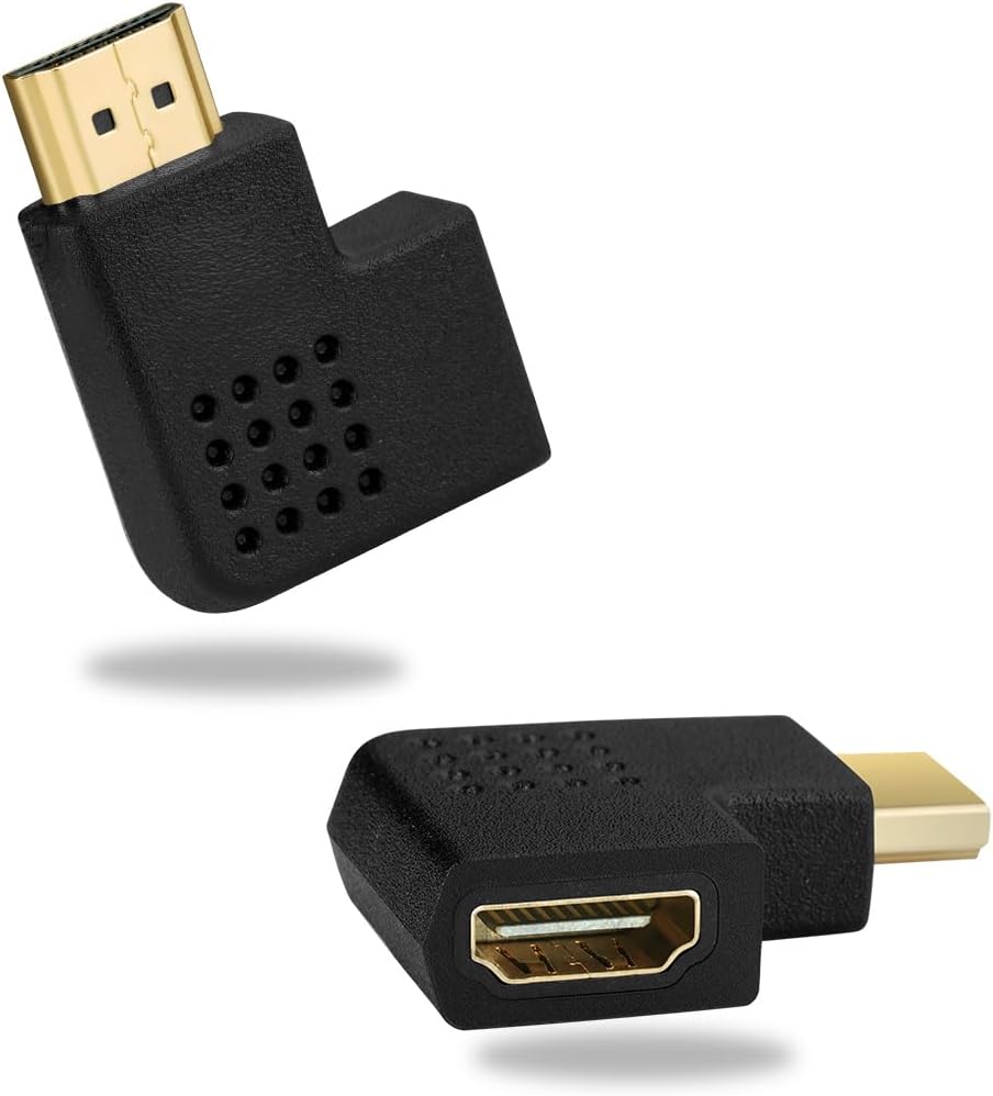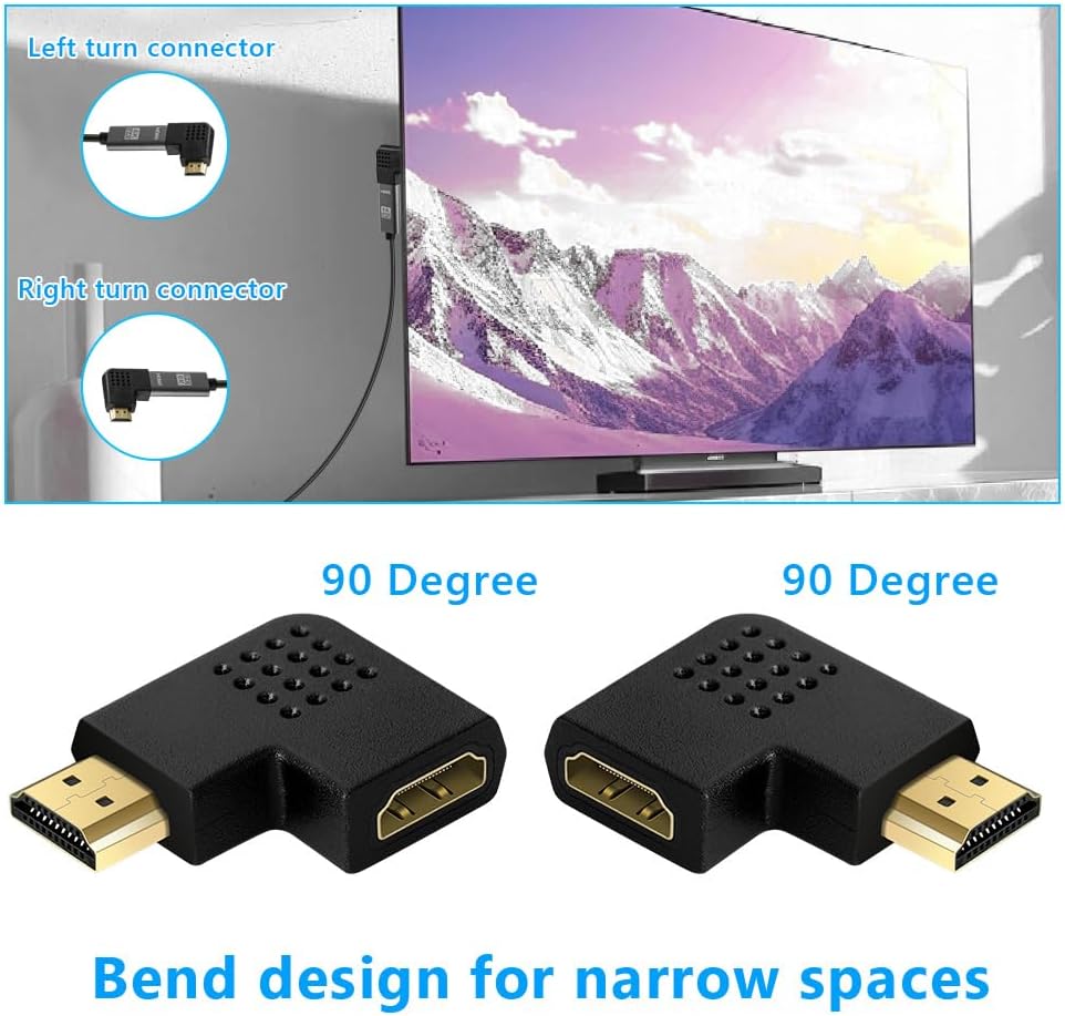 AXFEE HDMI ъглов адаптер, 8K HDMI ъглов щепсел, HDMI ъгъл 90 и 270 градуса, HDMI 2.1 кабел ъглов мъжки към женски, HDMI куплунг HDMI конектор за лаптоп HDTV, 8K @ 60Hz /4K @ 120Hz
