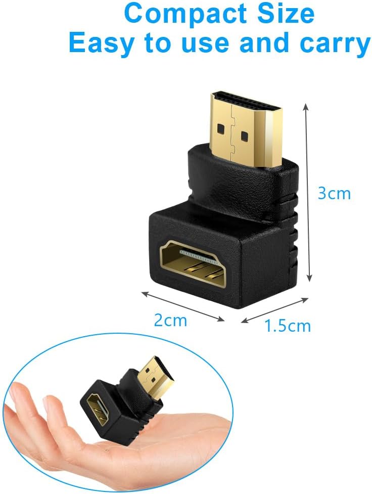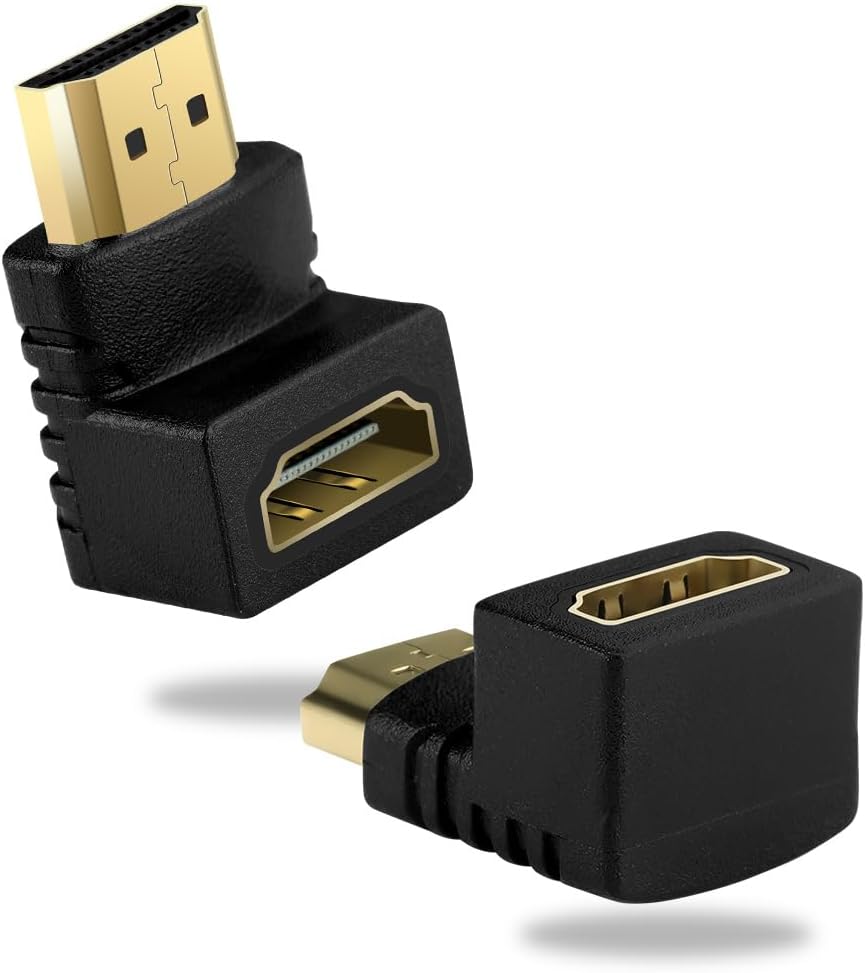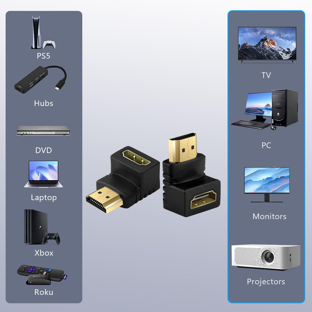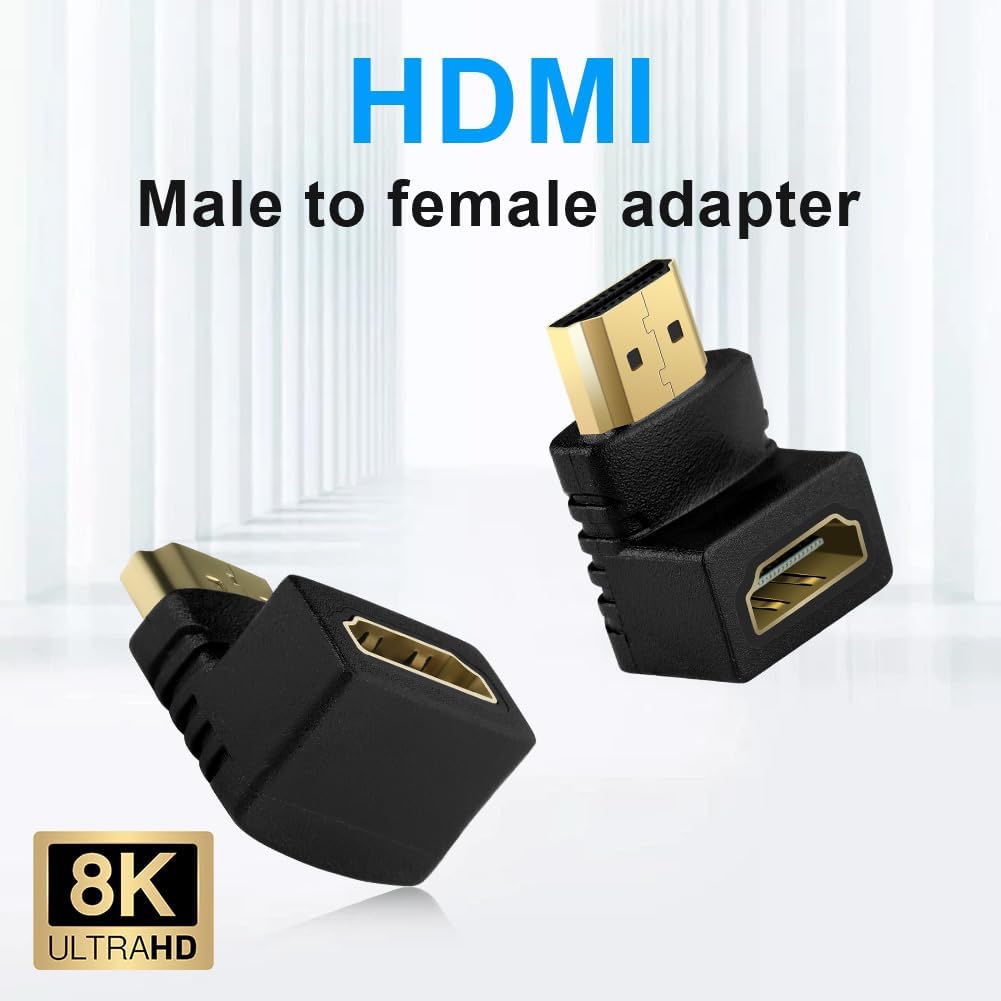 AXFEE HDMI ъглов адаптер, ъглов конектор, HDMI ъгъл 90 градуса, 2.1 кабел ъглов мъжки към женски, HDMI куплунг HDMI конектор за лаптоп HDTV, 8K @ 60Hz / 4K @ 120Hz / пакет от 2