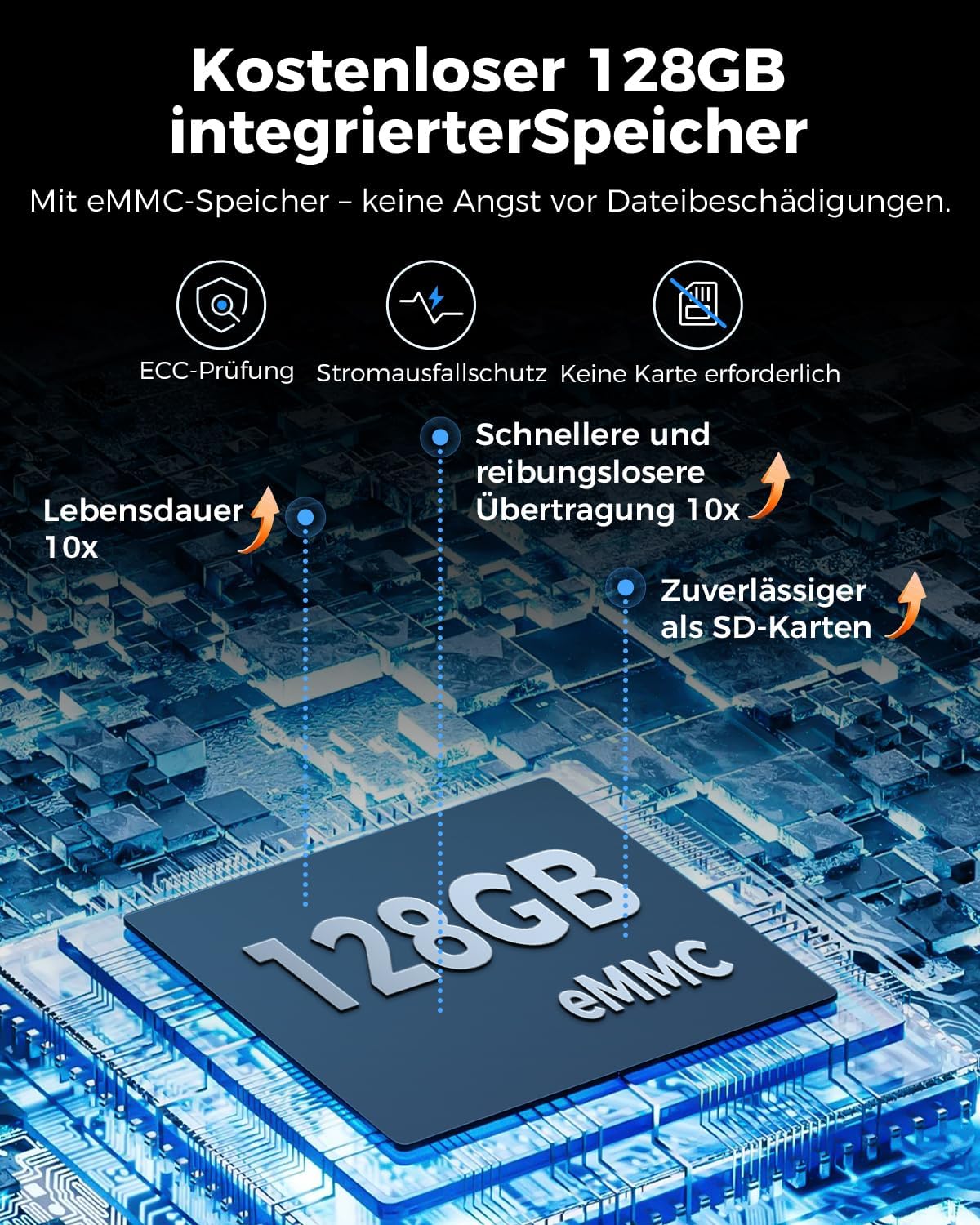 • 128GB eMMC доживотна памет за видеорегистратор - Не е необходима SD карта: Видеорегистраторът M660 разполага с усъвършенствана високоскоростна eMMC памет, предлагаща по-бързи скорости на четене и запис от стандартните карти с памет. Със скорости 2 до 3 пъти по-бързи от конвенционалните SD карти, той ефективно обработва големи количества данни, минимизирайки риска от загуба на данни и гарантирайки, че видеорегистраторът надеждно записва всеки важен момент.