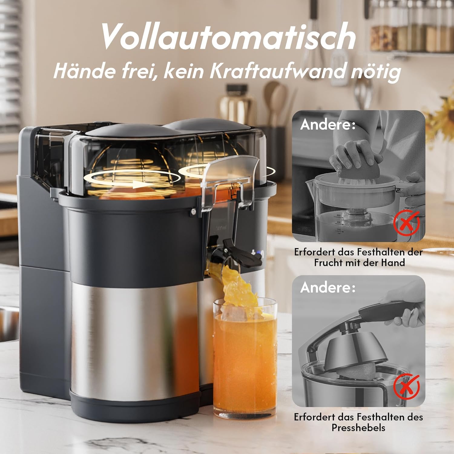 Затворете капака и гледайте – напълно автоматичното пресоване прави изцеждането на сок детска игра.